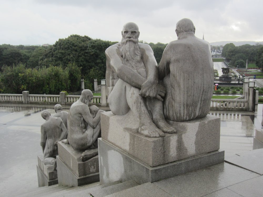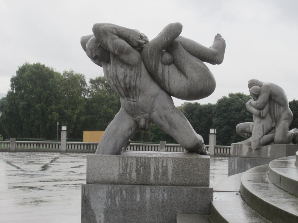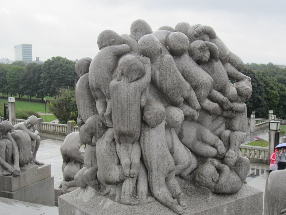Am übernächsten Tag -einen „Schleichweg“ genutzt um dem rauhen Wetter im Skagerrak zu entgehen- landen wir in Oslo, direkt vis á vis dem Akershus. Die CARA ist klein genug, um so nah am Zentrum der Stadt zu „parken“. Zu Fuss zum Vigelandspark in aller Frühe, es war noch etwas ungemütliches Wetter, aber wir wollten unbedingt vor den Touristenbussen dort sein. Geschafft!