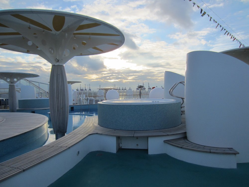 Frühshoppen?? Ja, auf der SOL gibt es ein eigenes Brauhaus mit selbstgebrautem Bier (war dann auch am Ende der Reise leer gegangen…). Man muss den Gästen ja etwas bieten, da eine Liegeprobe auf dem Pooldeck ergab: zu kalt.