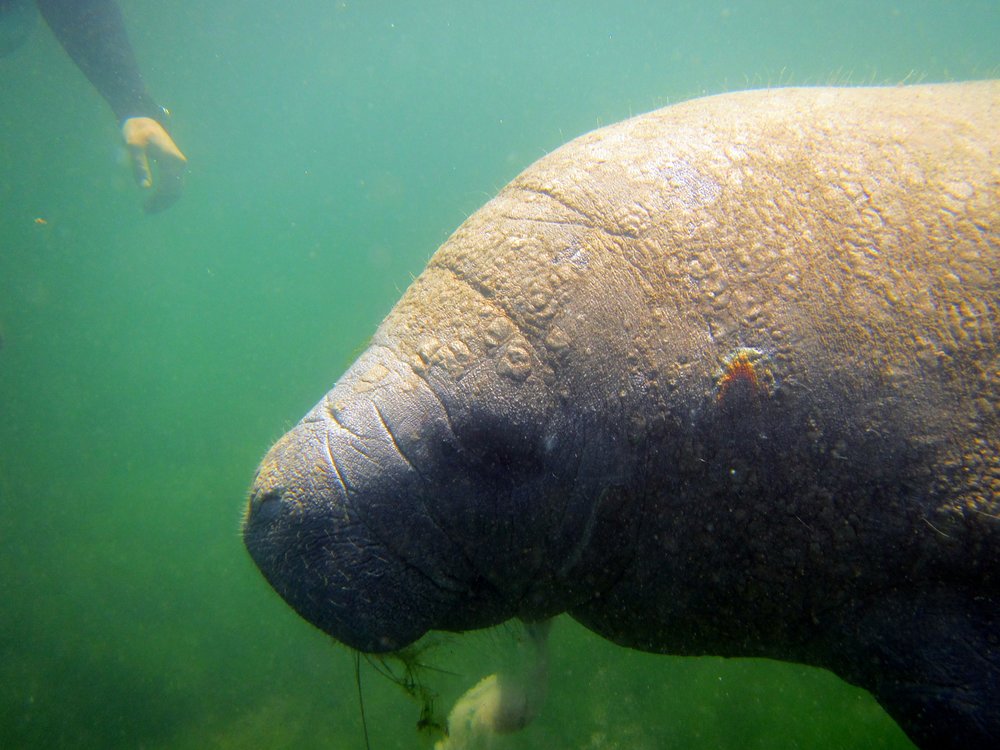 eine Disziplin, die jeder Taucher auch beherrschen muss, ist das Schnorcheln. Dieses Jahr hatte ich das große Glück, mit Manatees schnorcheln zu dürfen, im Crystal River. Man kann die Seekühe auch in Homosassa Springs hinter Glas in einem Aquarium bestaunen, wir zogen es vor, sie in ihrer natürlichen Umgebung zu besuchen, quasi mit ihnen durch ihre „Wohnung“ zu schwimmen. Im Crystal River lebt eine -nahezu stationäre- Gruppe von Manatees, die wir mit Captain Mike besucht haben.