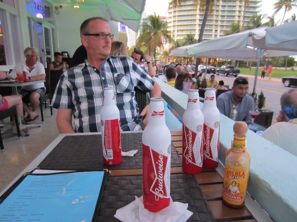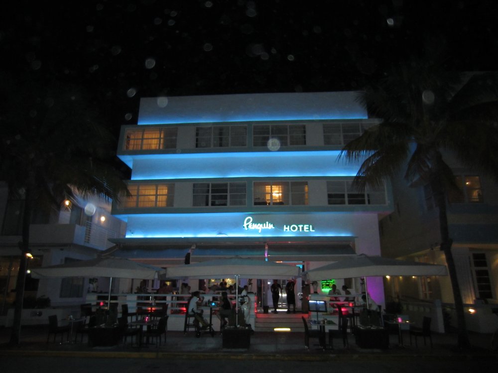 In Miami angekommen haben wir uns ein Taxi „gejagt“ (die nehmen Passagiere nur in der Etage 1 auf, das muss man erstmal wissen) und ab zum HotelPenguin, Art-Deco-Viertel South Beach, direkt am berühmten Ocean Drive. KLasse Lage. Hotel einfach und sauber, Personal freundlich. Wir sind dann noch ein wenig spazieren gegangen und mussten es irgendwie schaffen, möglichst lange wach zu bleiben (wie, das kann man evtl. auf den letzten Bildern erahnen ;-)..). 21.30 Uhr, tolle Leistung, wir sind stolz. Wetter: 30 Grad und Sonnenschein. Naja, jetzt gerade sitzen wir in der Lobby, haben ausgecheckt und warten auf unser Taxi zum Abholen des Campers; aber das ist eigentlich schon der nächste Tag. Also, davon später mehr.