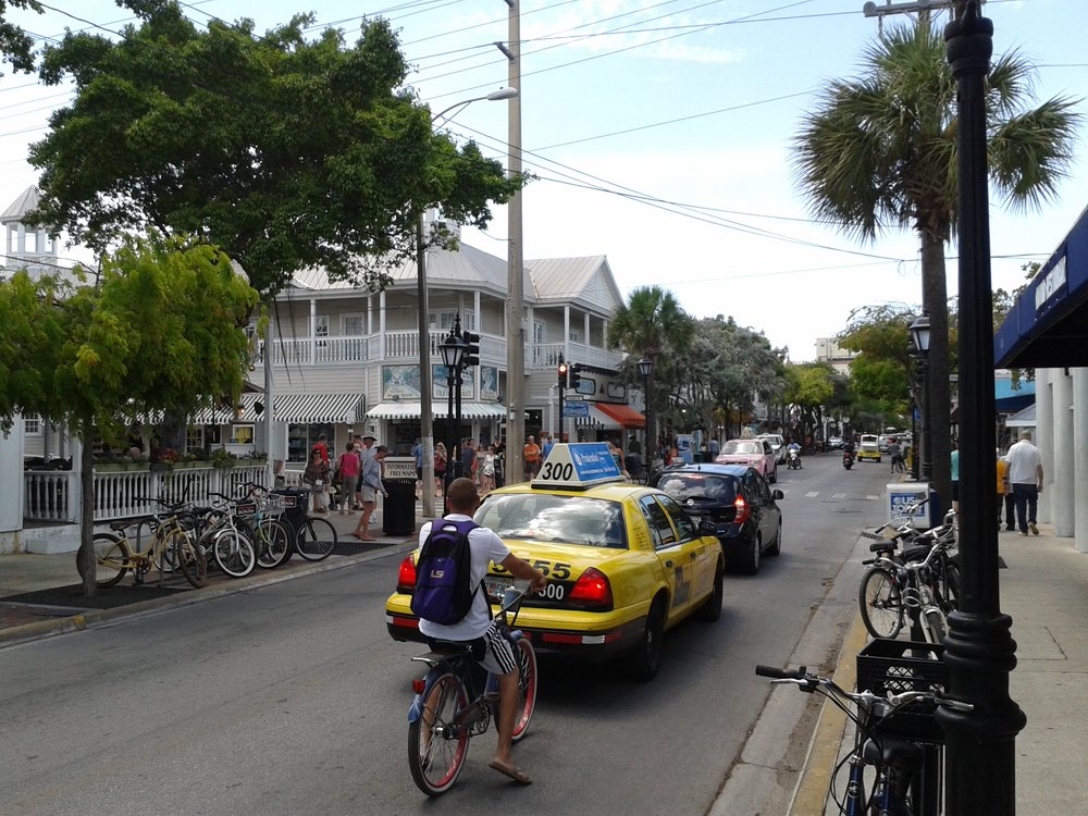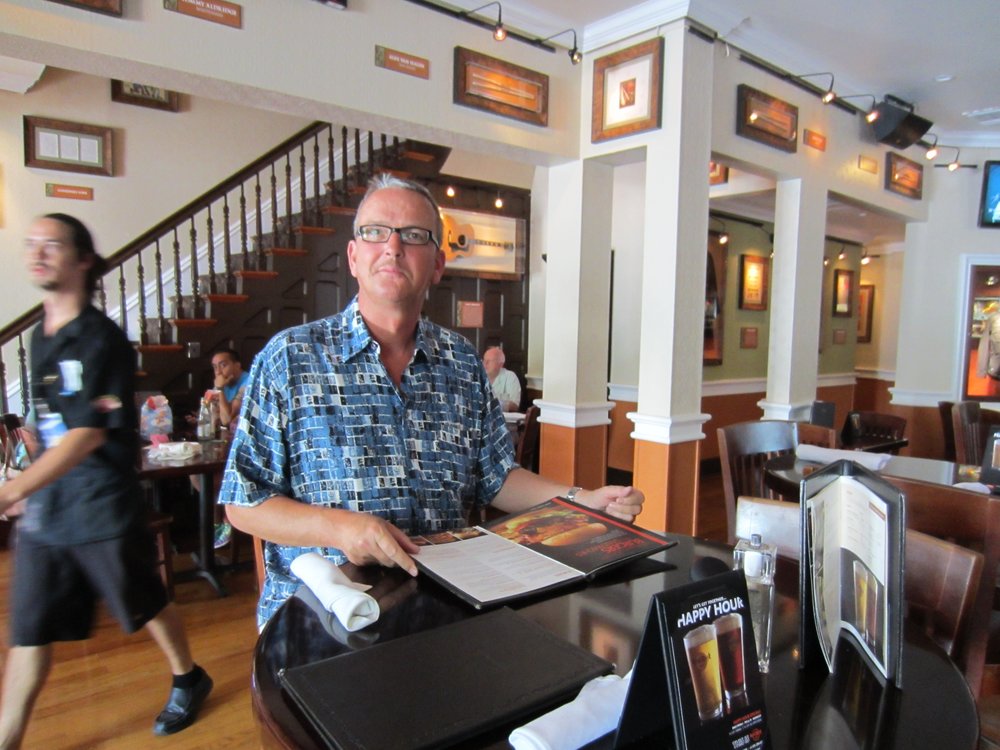 Der Plan war wie folgt: den laut Onlineauskunft verspäteten 10.15. Uhr-Bus bekommen, damit die ca. 45 Min. nach Downtown rein zu fahren und sich die Stadt angucken. Als wir den Campground verließen, konnten wir gerade noch dem Bus hinterher winken, er war nämlich pünktlich. Der nächste kam um 11.00 Uhr –auch pünktlich- wie praktisch, dass die Haltestelle nur ca. 20 Mtr. entfernt war. Die Fahrt kostete pro Nase 2 $, echt günstig für soviel Bus fahren. Nun denn, wir stiegen Caroline/Ecke Grinell aus, weil uns das die mitfahrenden 2 Amis empfohlen hatten. Dort war der Beginn des alten Hafens, echt sehenswert. Heute natürlich mit vielen Yachten gespickt, guckst Du Bilder. Auch die empfohlene Bar, Schooners Bar (mit Live-Musik etc.) direkt am Wasser haben wir gefunden aber nicht besucht (war noch zu früh *g*). Die gibt es übrigens in einer App als live-webcam, jetzt weiß ich auch, wo die genau ist. Danach hat Birgit Fischchen gefüttert und wir gingen weiter Richtung Zentrum, bis zum „World of Beer“ Haus (mit über 500 Biersorten weltweit wirklich lohnenswert: http://worldofbeer.com/locations/Key-West). Gegenüber direkt Sloppy Joes Bar, ein echter Touri-Anziehungspunkt und dementsprechend überlaufen und voll. Die Ecke rum sind wir dann die Duval-Street hochgelaufen, es kamen uns Touris mit Drinks in der Hand entgegen. Mein Tauchguide sagte, hier ist der einzige Ort in Amiland, wo dies möglich ist – und praktiziert wird! Karneval ist nix dagegen, hatten wir den Eindruck. Langsam hungrig kehrten wir ins Hard Rock Cafe ein, um einen leckeren Burger zu essen (Fiestaburger zu 13.95 $, plus Tax). So gestärkt ging’s weiter die Duval rauf, in ein paar Geschäfte rein (fast immer derselbe Touri-Kram), um am Southernmost-Point wieder kehrt zu machen. Danach noch ein paar Einkäufe im HRC (Gruß an Hans: alles bekommen! Und Pia: freu‘ Dich schon mal) getätigt, den verspäteten Bus nach Hause bekommen, nette Unterhaltung mit zwei Senioren aus Arizona gehabt und müde ins Bett gefallen. Key West, bye bye.