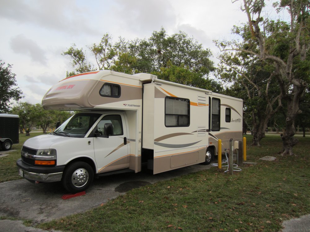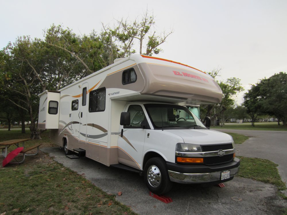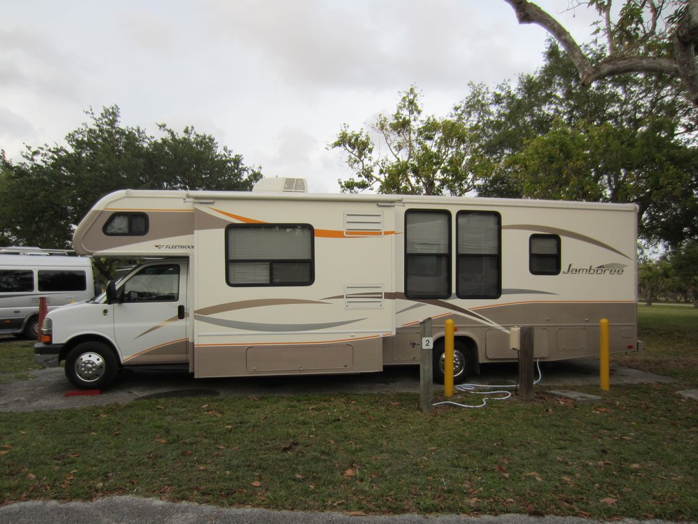 30.04.: Wie Ihr seht, hat es mit dem hochladen der Bilder und Texte für gestern doch noch geklappt; war eine seeeehr langsame Leitung nach good old germany. Bevor wir aber in der Lobby auf das Taxi warteten, sind wir den Ocean Drive bis fast zum Ende abgelaufen, bei 30 Grad kein Pappenstiel. Unten einige Fotos vom Art Deco und von Gianni Versace’s Villa, auf deren Stufen er ermodert wurde. Heute ist es ein Restaurant, wie passend. Nun gut, das Taxi fuhr uns in ca. 1 Std. zur Vermietstation („Station“ ist eigentlich zuviel gesagt, kannten wir von El Monte wesentlich anders). Waren um 13:30 dort und mussten bis 17:00 Uhr auf dem Campground sein (office-hours Miami-Dade-County, Beamte halt). Inklusive Einkaufen beim Walmart (unser Wunsch, weil der meist Alles hat) ist das ein strenges Programm. Man muss dazu wissen, dass man sich meist auch immer an den ersten 1-2 Tagen gerne verfährt oder mal die falsche Richtung erwischt. Anderes System halt (hat nix mit dem Alter zu tun Freunde!). Zuruück zum Walmart: die AMis haben das Parkhaus entdeckt! Für hieseige Verhältnisse eigentlich ungewohnt, da genügend Platz vorhanden ist. Also scheiterten wir an der Einfahrthöhe (wir haben 12, dingsda und das war nur 8,dingsda). Also umentschieden und Richtung Campground gefahren, auf dem Weg in einen Publix gestürmt und schnell mal die Grundbedürfnisse gedeckt (für den fehlenden Rest wollen wir morgen einen Walmart ansteuern). Das kann man Poweshopping nennen!