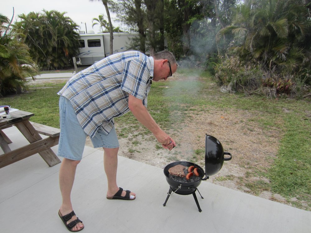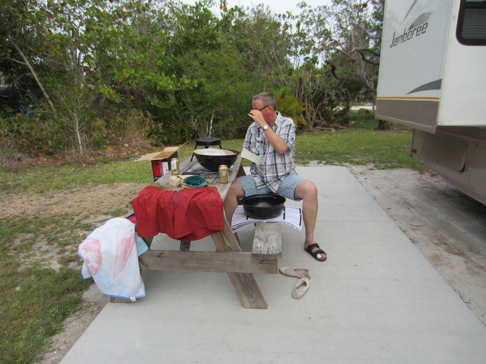 Nach dem Shoppen im Wal Markt Super Center sind wir dann ganz entspannt durch Naples, Bonita Springs und Ft. Myers Beach -immer am Wasser lang- nach Sanibel gefahren. Einfach so schwimmen Krododile neben einem her. Beeindruckend, von daheim kennt man vom Straßenrand nur Kaninchen. Stehen nun bei 30 Grad Innentemperatur -die Klima läuft erst 30 Min.- im Periwinkle Campground. Mit 150 Mls. war das heute der längste Trip, die restlichen werden wesentlich kürzer ausfallen, wir haben ja schließlich Urlaub!