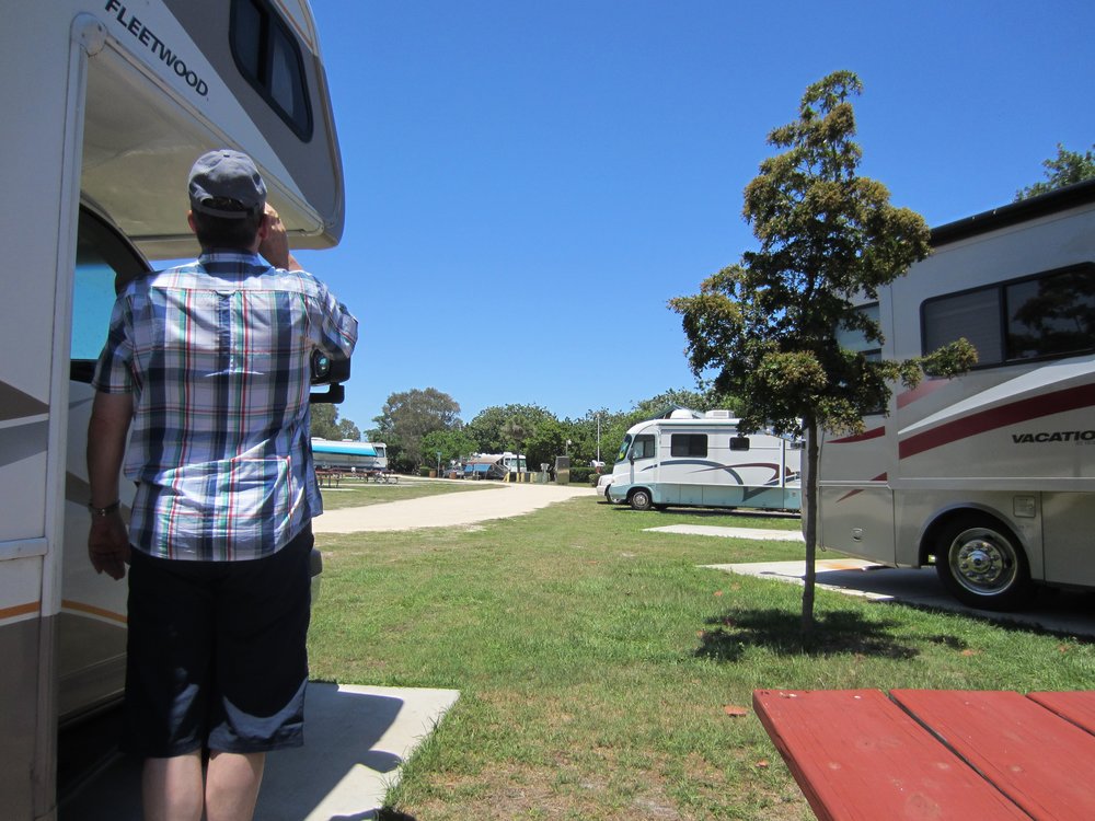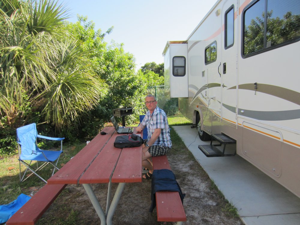 Die Gegend sah etwas komisch und heruntergekommen aus, so dass wir unser WoMo hier eigentlich nicht gerne parken wollten. O-Ton Frauchen: „hier steig ich nicht aus..“. Thema erledigt. Es war wirklich mehr als schmuddelig, auch für mich nicht besonders attraktiv. Also weiter Richtung Cape Canaveral, zum Jetty Park. Wir hatten schon Sorgen, dass der Platz evtl. sehr voll sein könnte, aber weit gefehlt. Das Beste hieran ist neben dem direkten Beach-Zugang natürlich die Chance, hautnah beim Start einer Rakete –als Camper- dabei sein zu können und dieses Ereignis vom Stellplatz aus zu bestaunen. Die Nähe zum Kennedy Space Center (KSC) –in nur knapp 30 Minuten bist Du dort- macht diesen Platz nochmal interessanter.