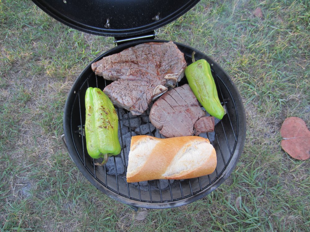 Natürlich konnten wir am Abend auch wieder unseren Grill sprechen lassen (nicht so große Steaks bitte, ich bin doch sooo klein ;-)). Allerdings  hat uns hier das Internet etwas hängen lassen, da wir erst gegen Abend eine Verbindung in die weite Welt bekamen….. Man merkt dann schon, wie wichtig das Alles ist und wie sehr man (wir) darauf auch angewiesen sind.
