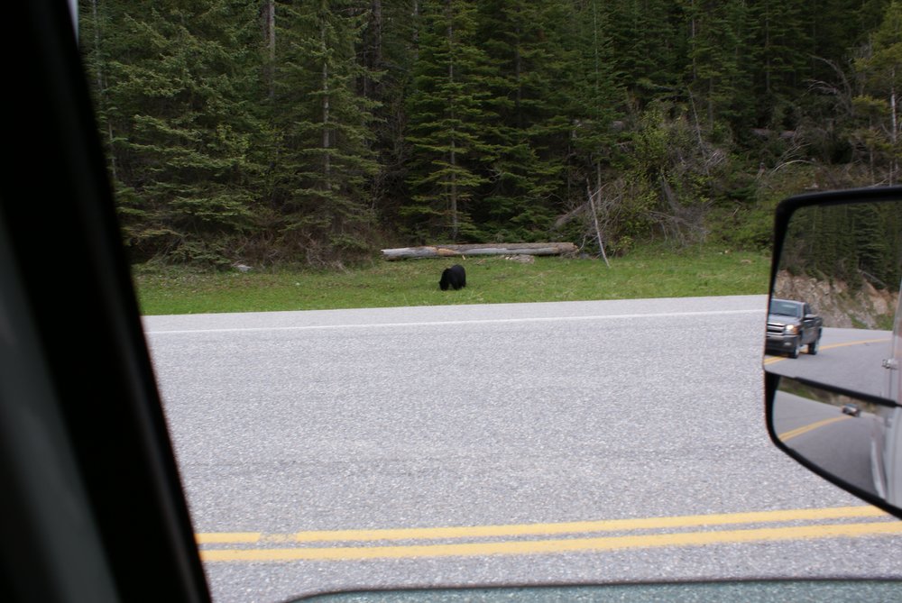 Wir fuhren gegen 8.00 Uhr los und am Eingang des „Kootenay NP“ (http://de.wikipedia.org/wiki/Kootenay-Nationalpark) wurde mit riesigen Warntafeln (wie beim Strassenbau) gewarnt: Caution! Bears on Road! (Einer sprang sogar quer über die Strasse…….. Bärfamilie beim Morgenspaziergang?)