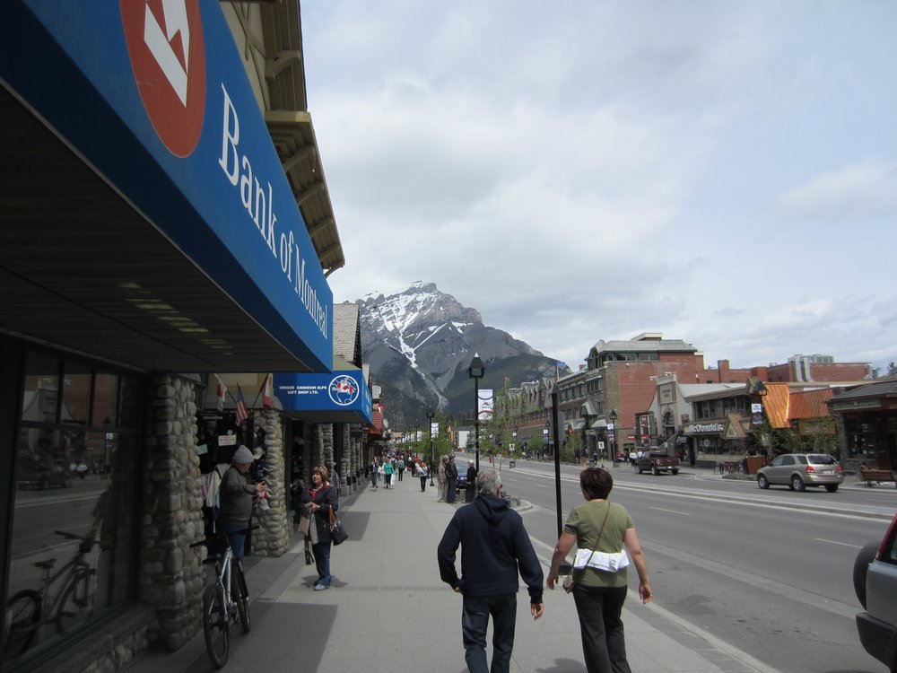 Am Hwy 1 kurz vor Banff gibt es einen Aussichtspunkt, an dem mit Holztafeln in Richtung auf den Gipfel der jeweilige Berg genannt wird (dann weiß man wenigstens, welchen Berg man gerade fotografiert). In Banff angekommen, haben wir erst mal am Campground eingecheckt, im „Tunnel Mountain View II“ (guckst Du: http://www.pc.gc.ca/pn-np/ab/banff/activ/camping/tunnel2.aspx) für 2 Nächte. Nach dem einchecken dann in den Ort (guckst DU: http://www.banff.ca)gefahren, zum shoppen und einen ersten Erkundungsgang, guckst Du: