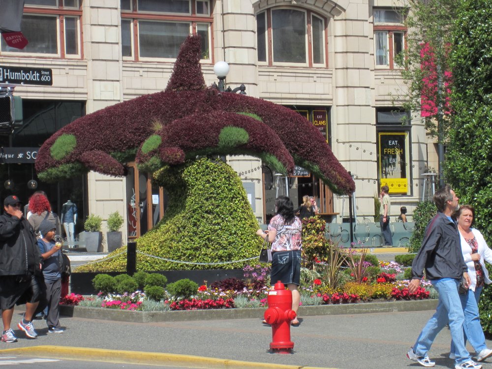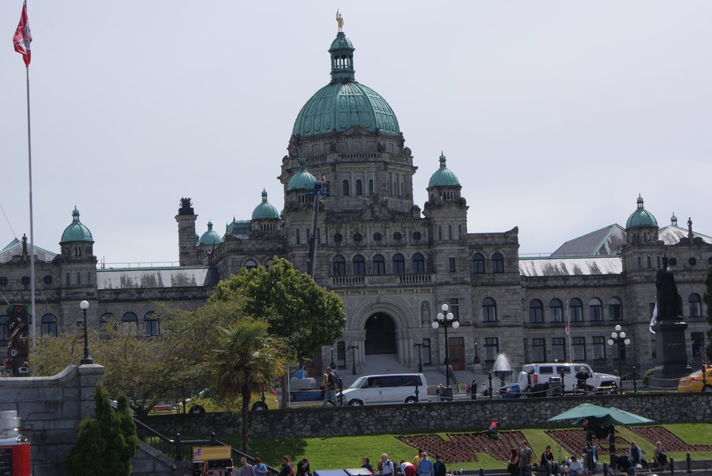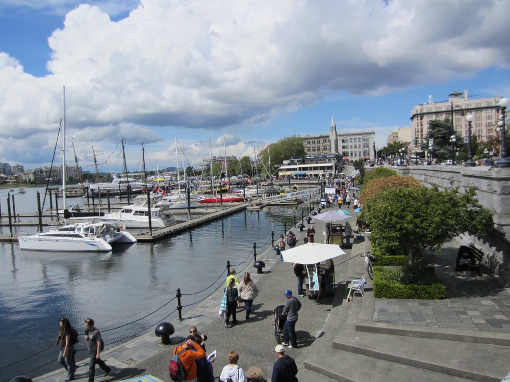 Von der Fähre runter fuhren wir ertsmal die nächste Tourist-Info an, wir wollten noch ein wenig Prospektmaterial, Karten und Tips mitnehmen. Die Frau war sehr freundlich, neugierig und zuvorkommend. Wir unterhielten uns ein Weilchen, nahmen die Tips, Karten und Prospekte gerne mit und fuhren alsdann den Campground in Victoria an, der eine Busverbindung zur Stadt in der Nähe hat (guckst Du: http://www.fortvictoria.ca/). An der Reception erhielten wir den Fahrplan mit Hin-/Rückfahrtzeiten, die Tickets und eine kleine Map, auf der die richtigen zentralen Haltestellen eingezeichnet waren (natürlich in deutsch!, einfacher geht’s nimmer). Die Busfahrt in die City war nicht lange, ca. 20 Min. Auffallend war, dass die Fahrgäste (überwiegend Schulkinder/Jugendliche) sich alle beim Fahrer bedankten beim Aussteigen. Genial. Wir machten also eine erste Runde durch Victoria, aßen lecker Fisch am Hafen und buchten für den nächsten Tag die „Whale-Watching Tour“ (guckst Du: http://www.bcwhalewatchingtours.com/). Aber davon Morgen mehr……