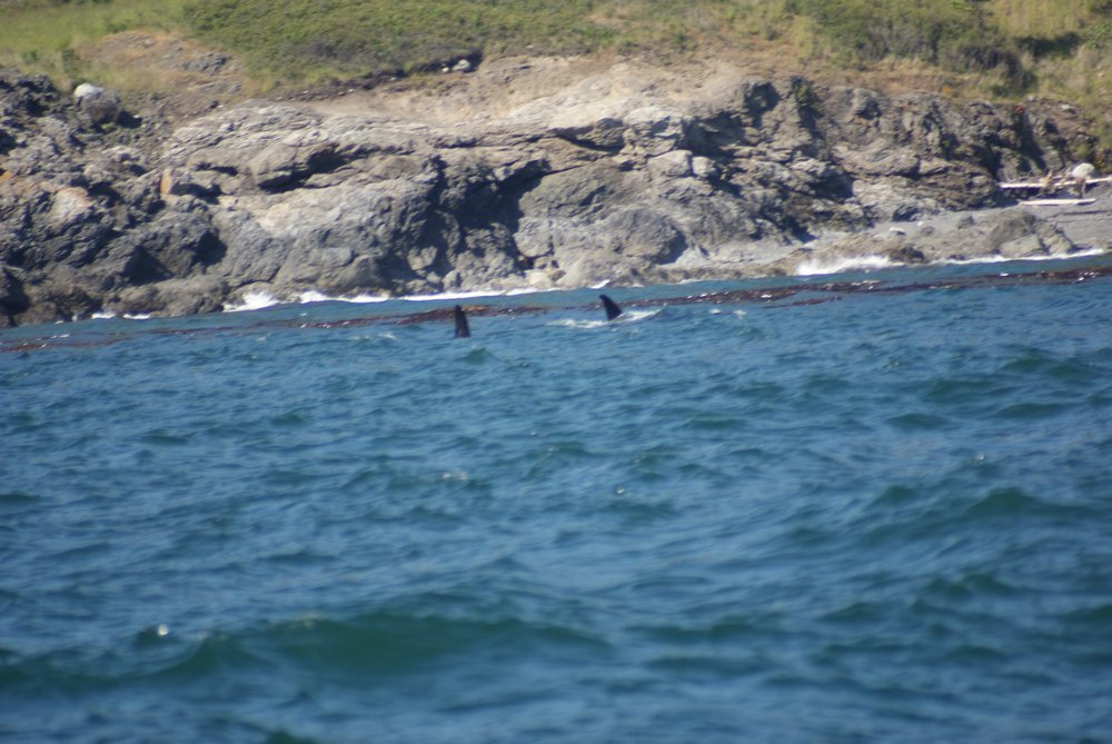 Auf ein Wort: man könnte meinen, die Orcas würden mit den Booten solange „verfolgt“, bis die zahlenden Touris ihre Bilder geschossen haben. MITNICHTEN läuft das so. Sobald ein Orca in ca. 150 – 300 Mtr. gesehen wird, alle Maschienn auf Stopp! Man „dümpelt“ dann (keiner war Seekrank) daher und wartet, ob man „besucht“ wird. Und tatsächlich, die Kollegen Orcas sind sehr neugierig, wie man an den Bildern auch sehen kann. Entweder kommen die Tiere so nah, dass man super Bilder bekommt, oder eben nicht. Das ist sanfter und tiergerechter Tourismus, finde ich. Die Bootsführer gehen mehr als respektvoll mit den Tieren um und so sind wir alle zufrieden von Bord gegangen. Auf dem Rückweg haben wir noch eine kleine Bucht besucht, in der tummelte sich ein Seehund, habt ihr ihn gefunden? Ziemlich erledigt hatten wir gegen ca. 18.00 wieder festen Boden unter den Füßen und waren uns einig, dass diese Investition sich sehr gelohnt hat.