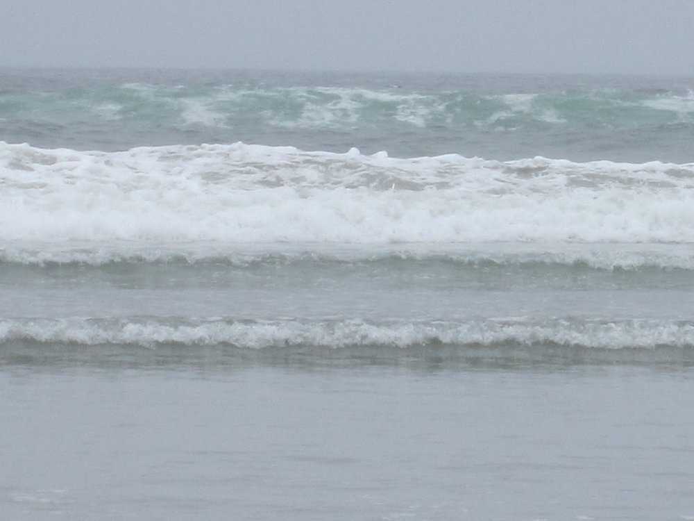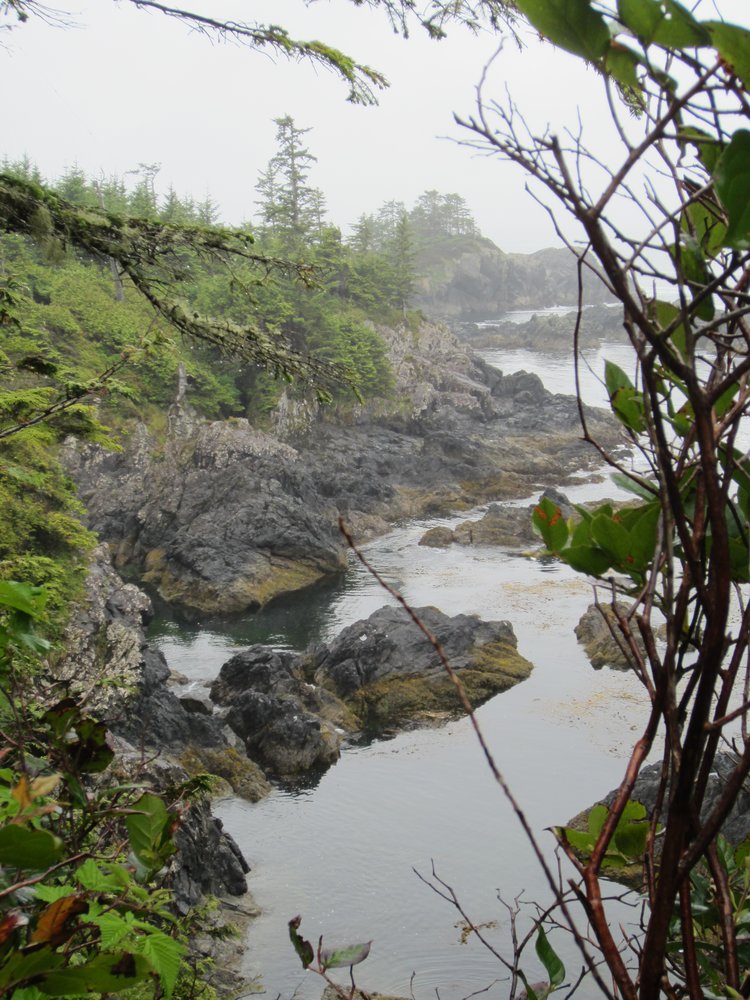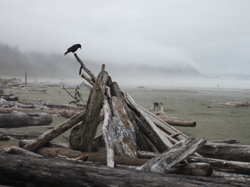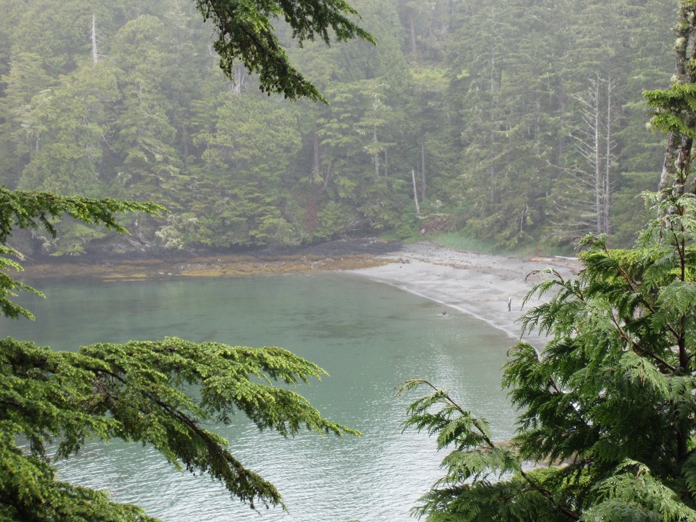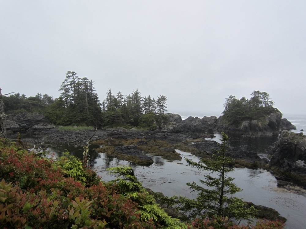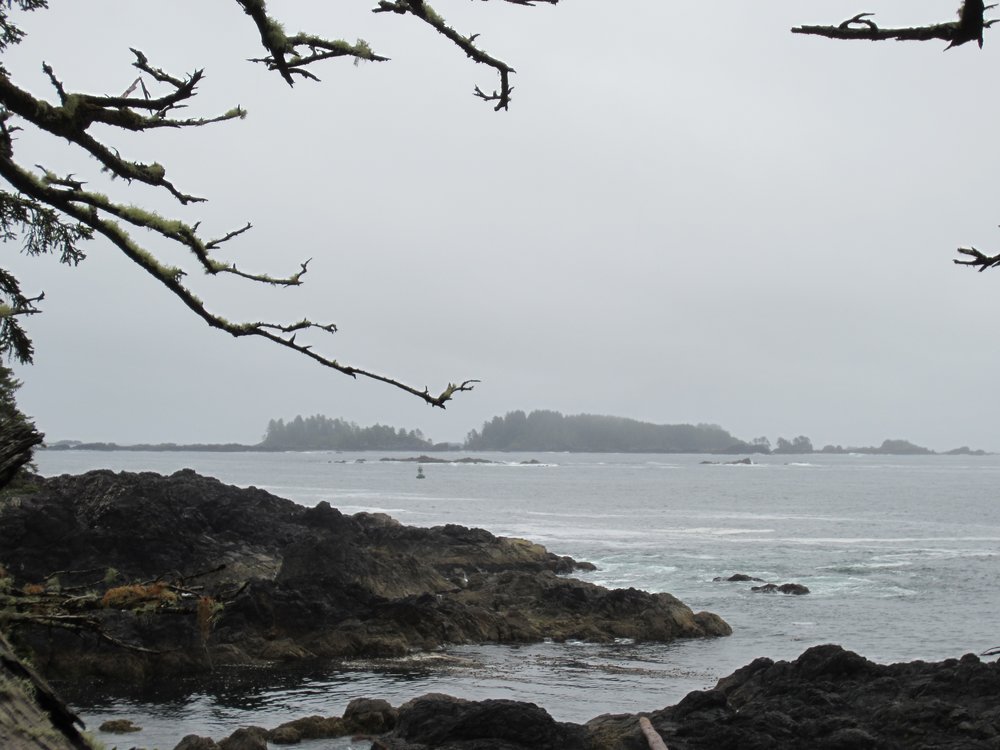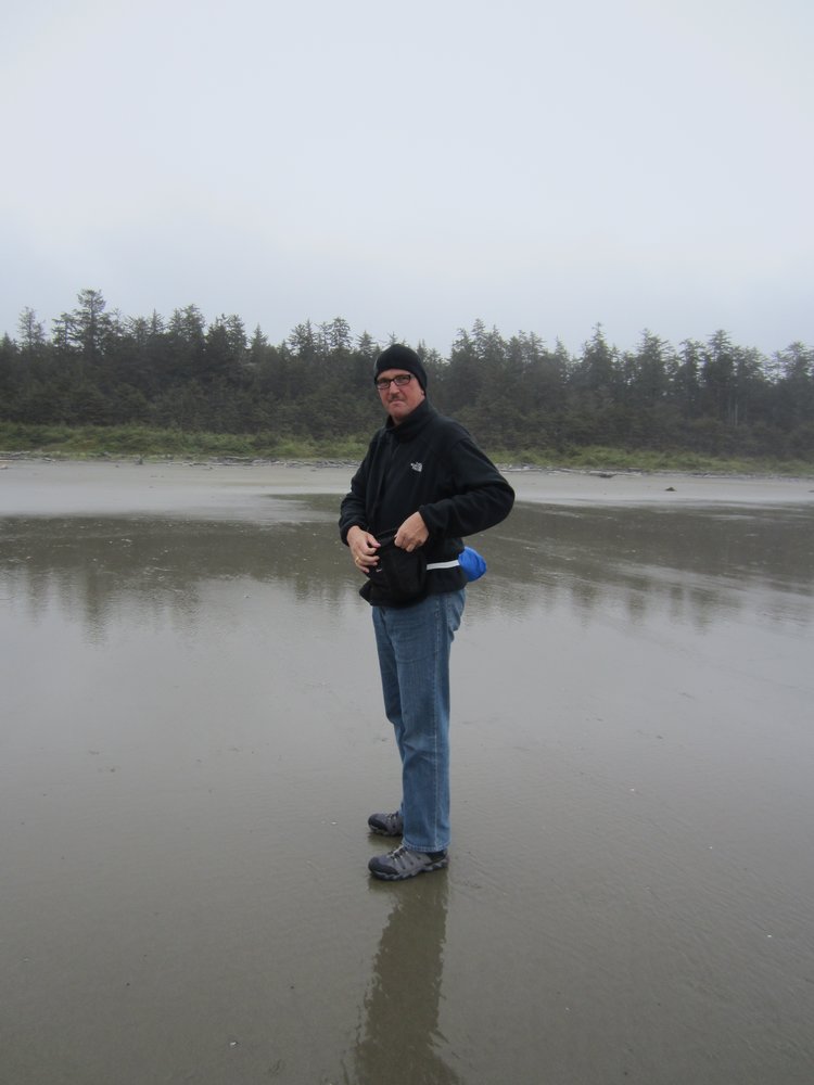 Das war schon ganz schön wildromantisch. Das Wetter hat sich gegen Ende der Tour auch so langsam bekrabbelt. Wir sind dann weiter Richtung Tofino, entlang des „Pacific Rim NP“ gefahren und haben unterwegs den „Rainforest Trail“ passiert (evtl. am nächsten Tag?) und sind am „Long Beach“ (guckst Du auch: http://www.longbeachmaps.com/) an den Strand. Das Wetter war noch diesig, hier am Wasser noch ein wenig mehr. Guckst Du Bilder: