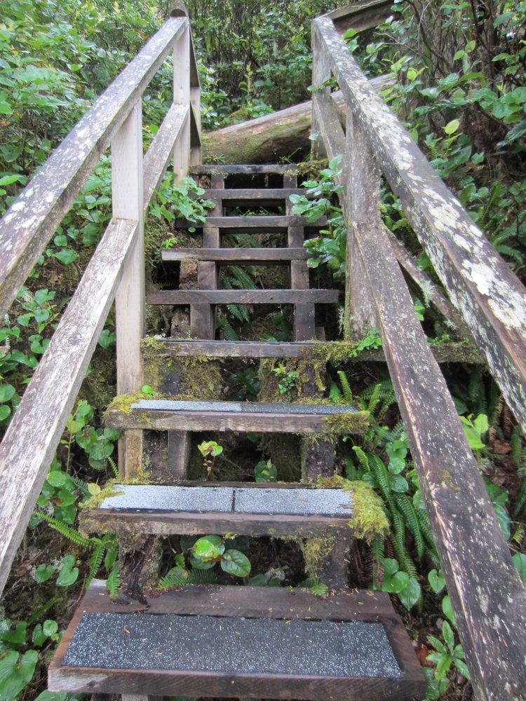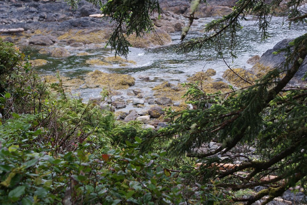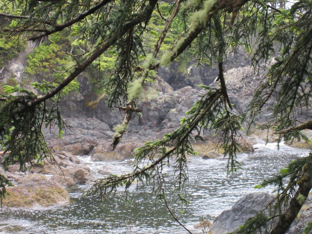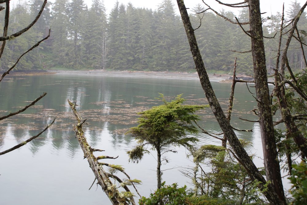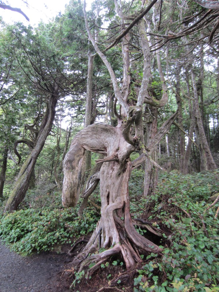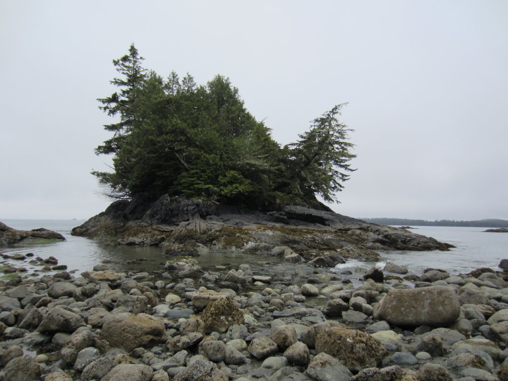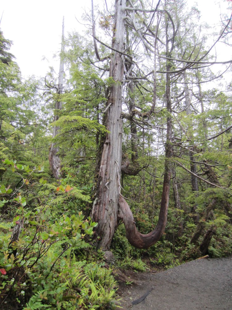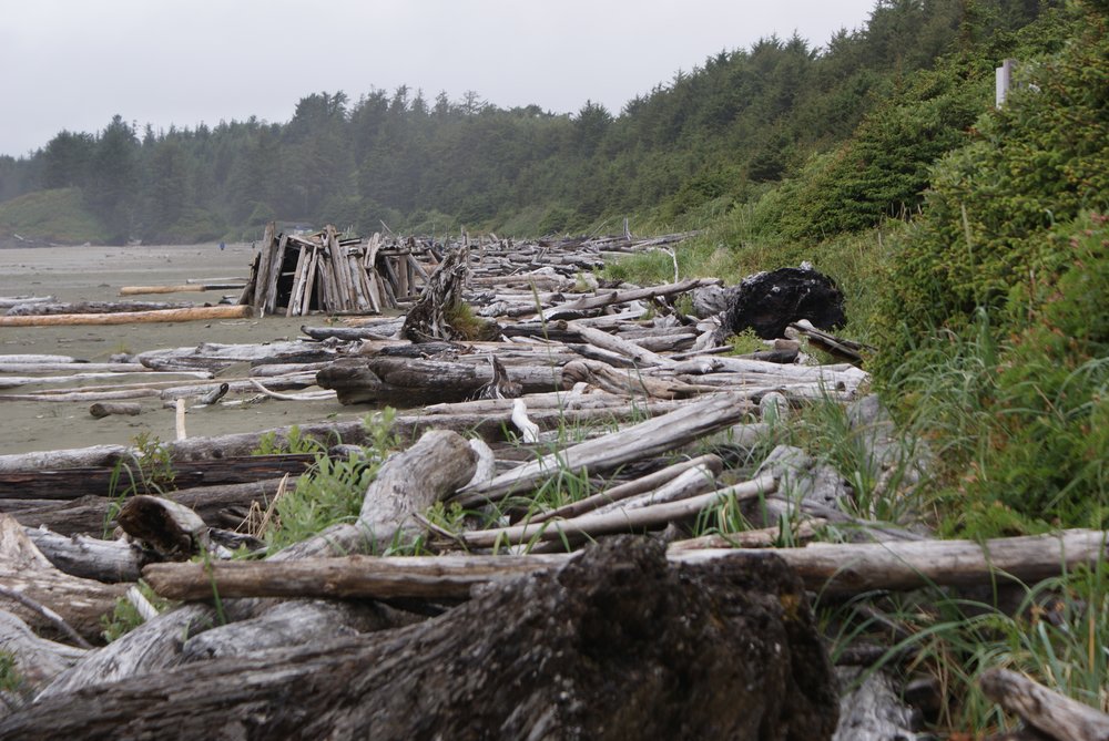 Das war schon ganz schön wildromantisch. Das Wetter hat sich gegen Ende der Tour auch so langsam bekrabbelt. Wir sind dann weiter Richtung Tofino, entlang des „Pacific Rim NP“ gefahren und haben unterwegs den „Rainforest Trail“ passiert (evtl. am nächsten Tag?) und sind am „Long Beach“ (guckst Du auch: http://www.longbeachmaps.com/) an den Strand. Das Wetter war noch diesig, hier am Wasser noch ein wenig mehr. Guckst Du Bilder: