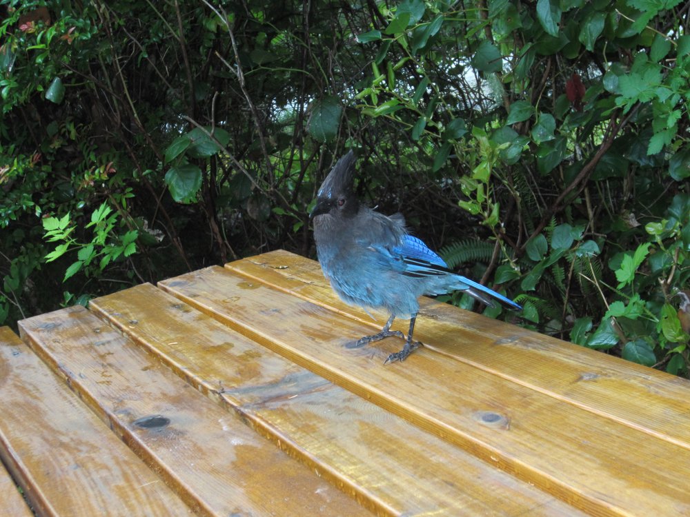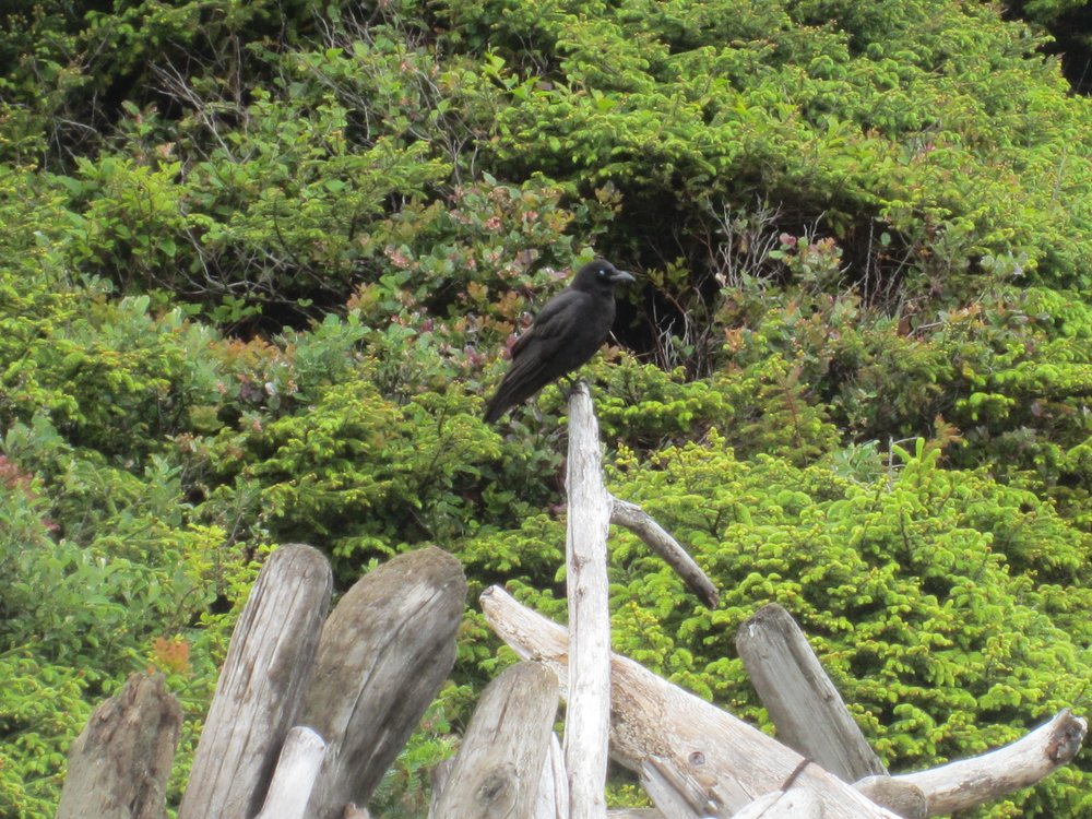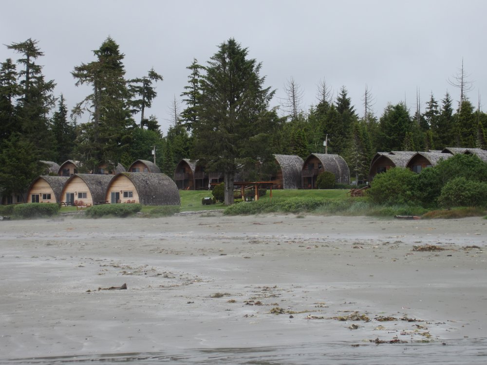 Das war eine Stimmung! Wir waren anfangs ganz alleine am Strand, weit und breit kein Mensch, nur dieser RABE! Wir fuhren also nach Tofino rein und mussten noch ein wenig shoppen. Tofino ist -anders als Ucluelet- eher touristisch angelegt und so gibt es neben einem Supermarkt auch ein paar Souvenirshops und Restaurants etc. Wir kamen auf unserem Campground „Crystal Cove Beach Resort“ an und checkten ein (guckst Du: http://www.crystalcove.ca/). Wow, was für ein Luxusplatz!!! Hier noch ein paar Bilder dazu: