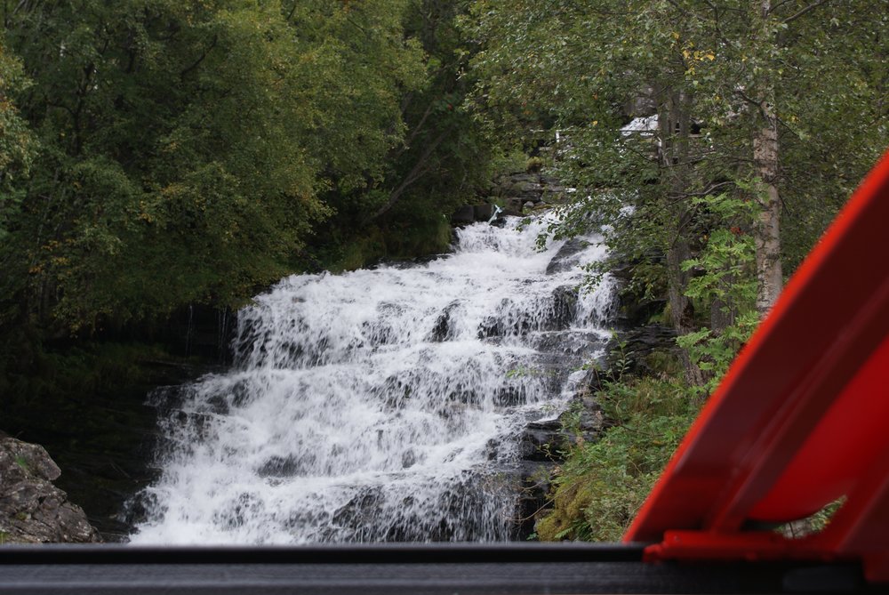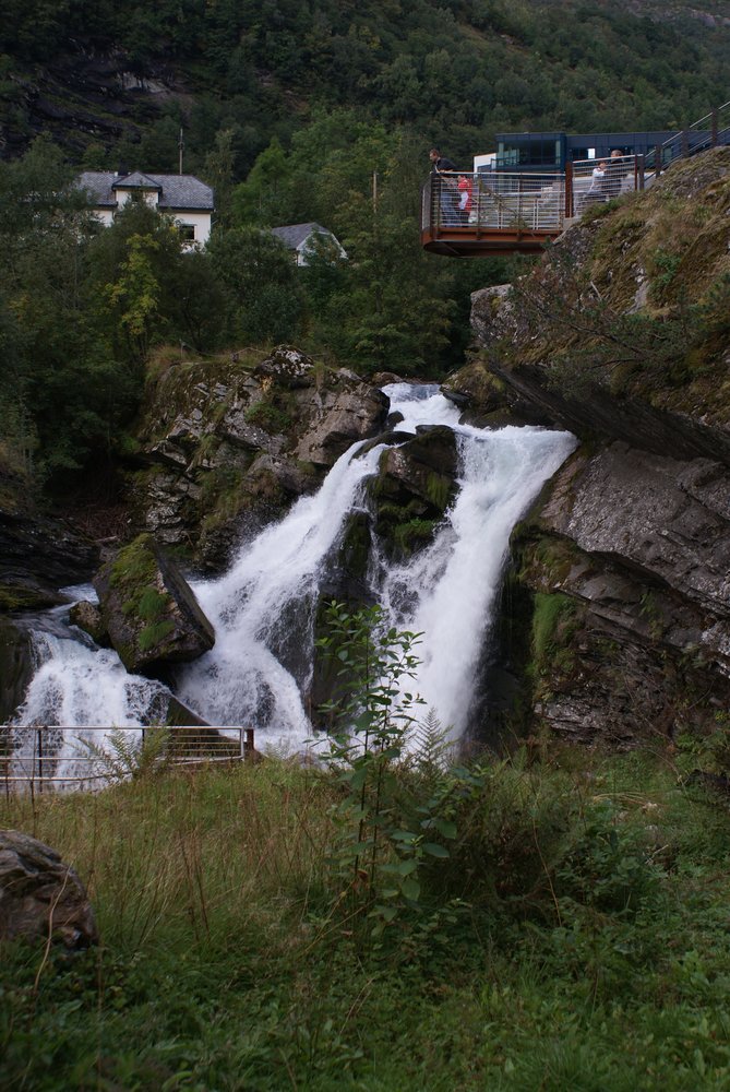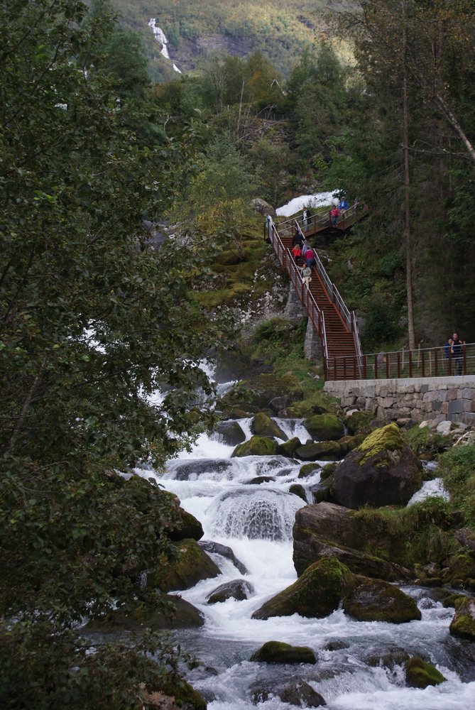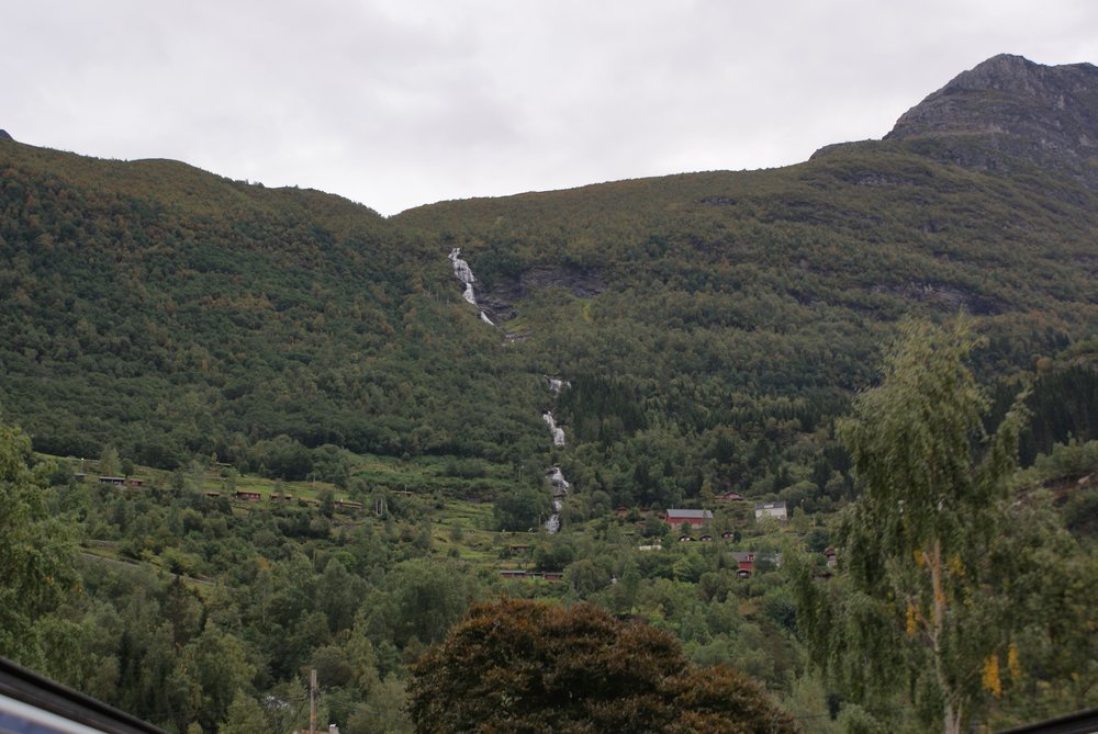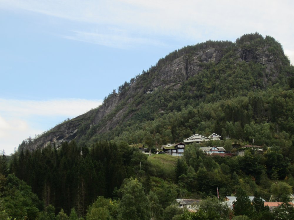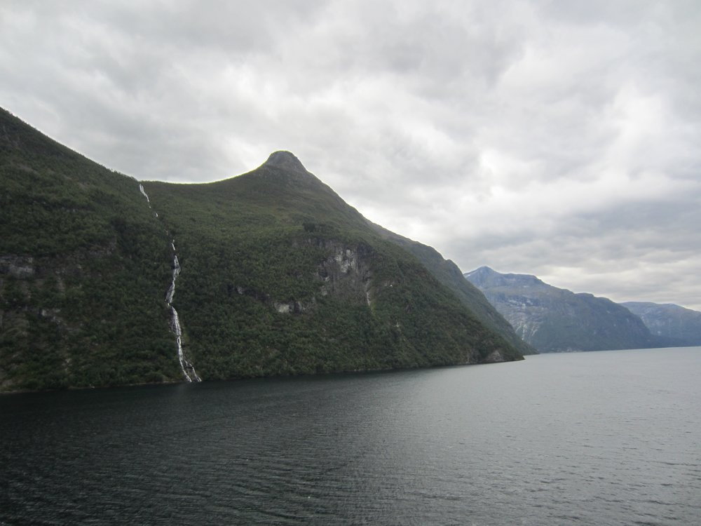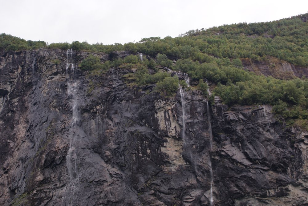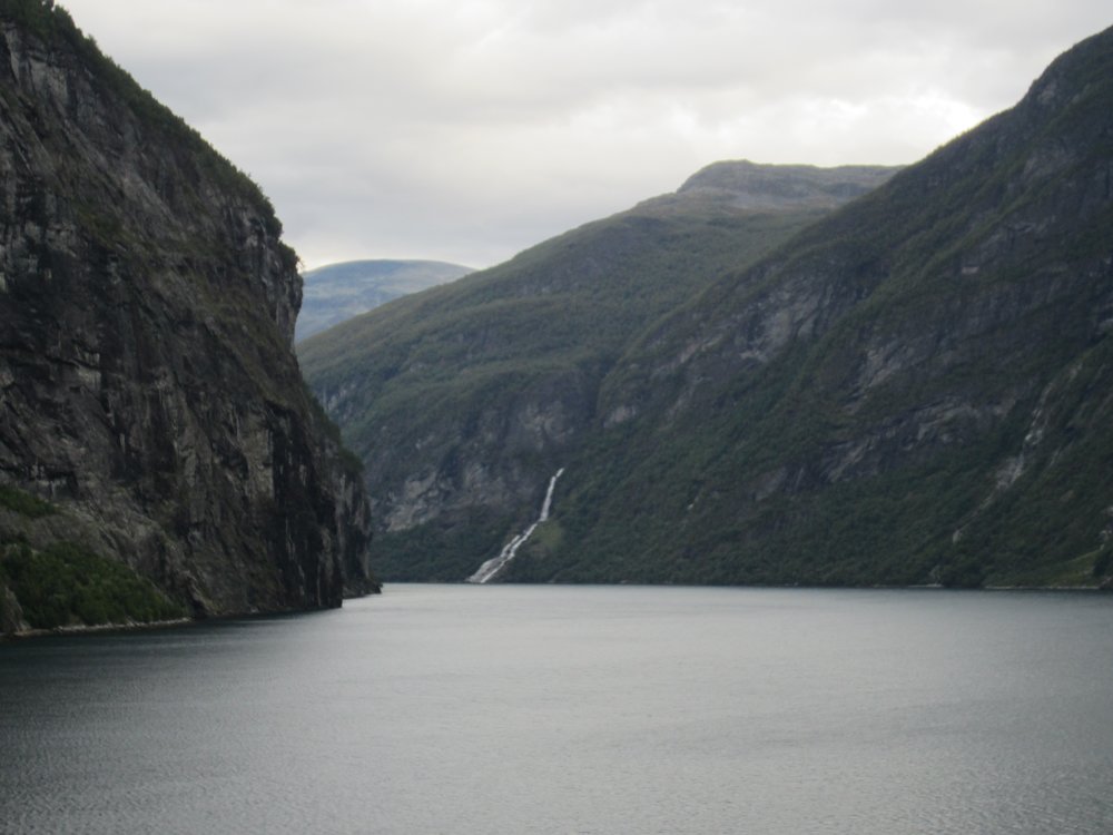 Aber die Sicht gut und das Wetter trocken. Die Einfahrt war sehr schön, wir fuhren auch direkt an den „Sieben Schwestern“ vorbei (guckst Du: http://de.wikipedia.org/wiki/Sieben_Schwestern_(Wasserfall)). Es war etwas wenig Wasser, aber nicht schlimm. Auch den „Trollkopf“ am Trollpfad konnten wir sehen, hier mal ein paar Bilder der Einfahrt, guckst Du: