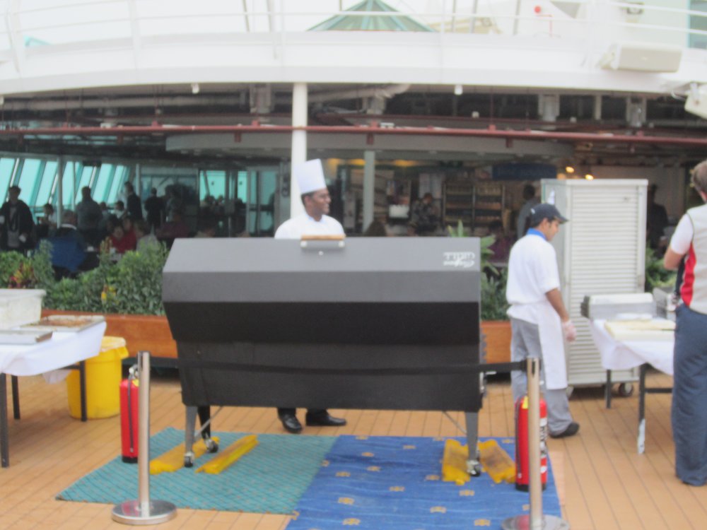 Der Seetag hatte noch ein paar nette Überraschungen parat. So gab es gegen Mittag ein Barbecue, der Grill wurde an Deck aufgebaut und zu Mittag konnte man lecker gegrillte Würstchen und Hühnchen essen. Dazu gab’s ein kurzes Buffet, an dem es diesen tollen coleslaw-Salat gab. Wir konnten nicht widerstehen! Der vorherige Abend ist etwas spät geworden *grins*