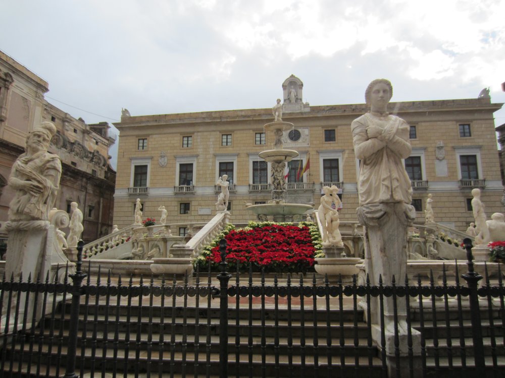 Nun denn, wir haben eine ca 3-stündige Runde gedreht, mit Rathaus und großem Brunnen davor, der großen Kiche, einer kleinen Kirche und der Einkaufsstrasse. Es gab viel zu sehen. Wir fühlten uns immer sicher, kein Problem in Sicht. Nun -es ist kurz vor 5- gibt es die Info zu Rom. Wir haben uns entschieden und werden getrennte Wege gehen. Birgit und ich machen die Tour „Rom zu Fuß“, Marga und Angie haben „Weihnachtliches Rom“ gebucht. Wir werden auf jeden Fall den ganzen Tag unterwegs sein, da der Hafen civitavecchia ca. 1,5 Std. Fahrzeit entfernt ist (ohne Stau gerechnet). Hier mal ein paar Bilder zu Palermo, guckst Du: