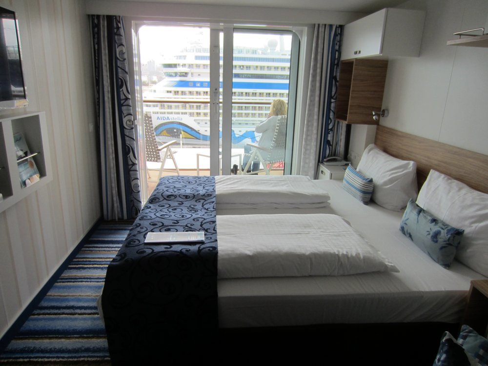 Danach sahen wir den „blauen Balkon“, 37 Meter nur durch eine Glasplatte getrennt. Wir saßen noch schön in der Sonne am Heck und um 15.00 Uhr konnten wir in unsere Balkonkabine. Schick. Guckst Du mehr Bilder: