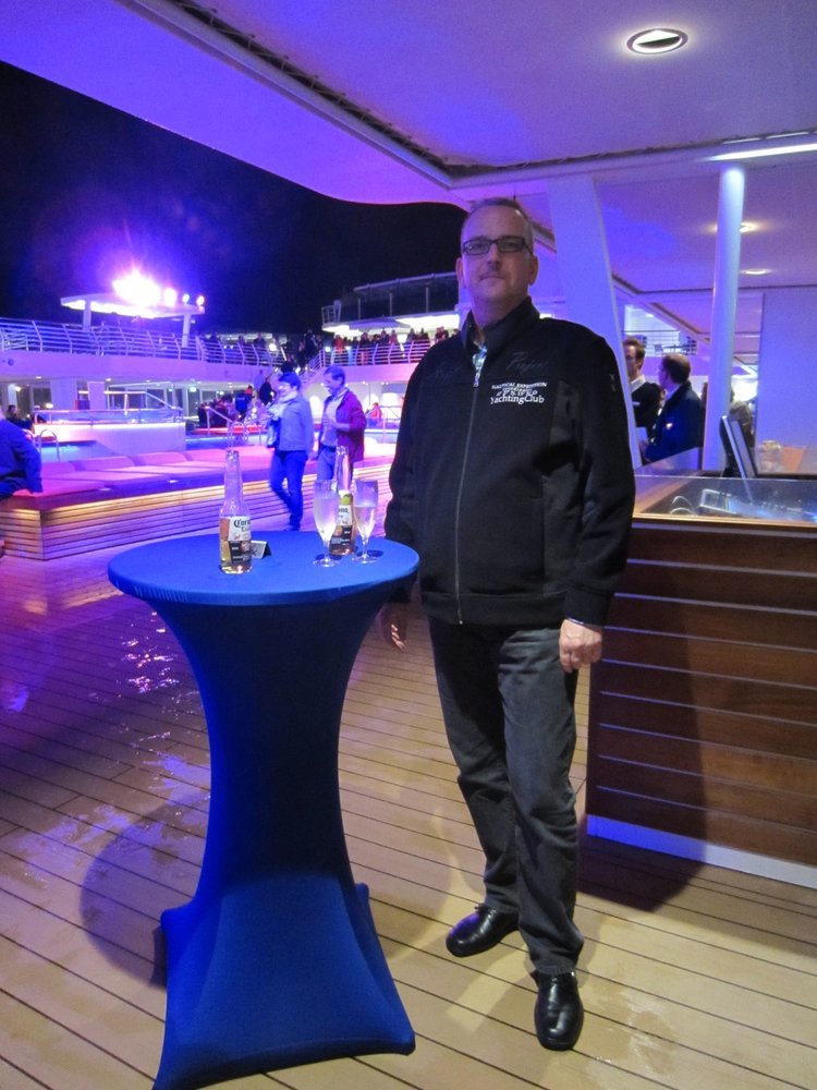 Danach war es an der Zeit, die Willkommensparty zu feiern, während das Schiff ablegte. Leider fing es etwas stärker an zu regnen, so dass die Liveband nur 2 Songs aufführen konnte, dann war Schluß und wir fielen gegen 22.30 Uhr sehr müde in die Falle. Guckst Du nochmal: