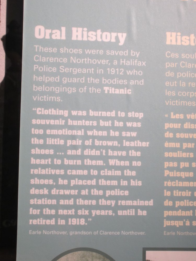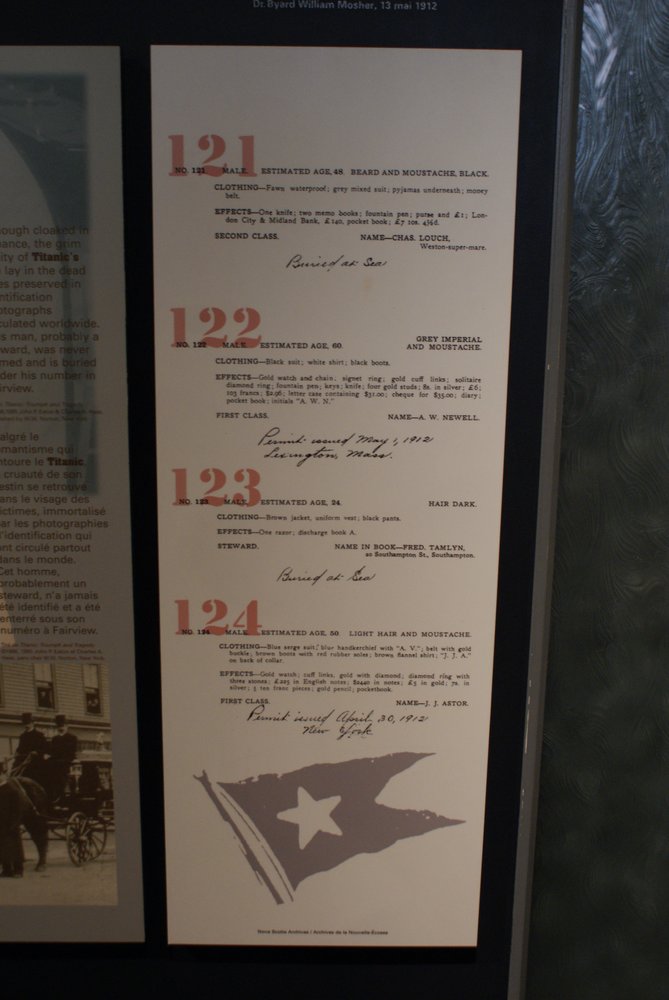 wir erkundeten uns zuerst, wie wir mit Öffis zu besagtem Friedhof kommen könnten und bekamen noch die Empfehlung, zuerst ins Maritime Museum zu gehen, ein Besuch solle sich sehr lohnen. Wenn Du in Amiland oder Canada einen solchen Tipp von der Tourist-Info bekommst, solltest Du ihn unbedingt befolgen. Die separate TITANIC-Abteilung war echt sehr interessant, sie hatten Musterkabinen, Speispläne, Fahrkarten etc. ausgestellt. Insbesondere aber eine Replic des Grabsteines für das „unknown Child“ sowie dessen Originalschuhe. Wie gesagt, es lohnte sich, guckst Du ein paar Bilder Titanic-Spezial: