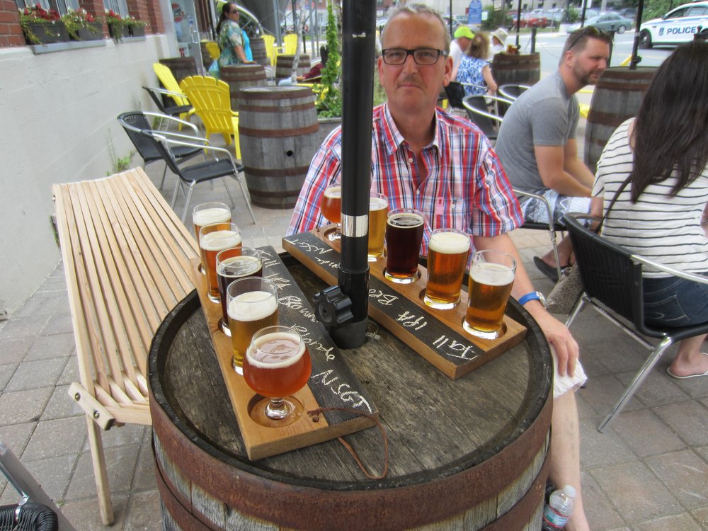 Gegen Ende unseres Rundganges kamen sehr dunkle Wolken auf, so gingen wir zurück Richtung Schiff. Im Terminal sollte es free Wifi geben, so hatten wir den Laptop in der Kabine gelassen. Eine kleine Bierprobe gegenüber in der Brauerei weiter, versuchten wir es mit dem Wifi.
