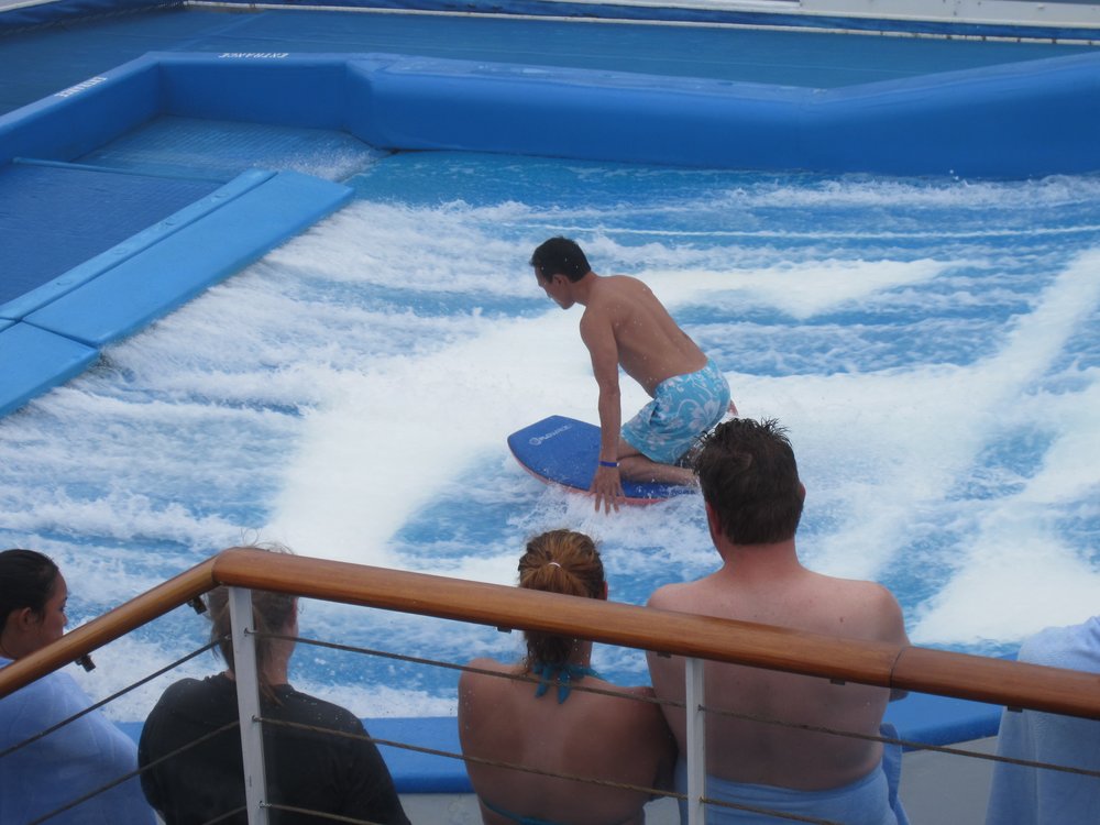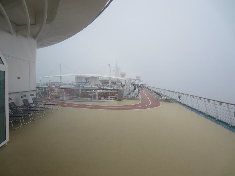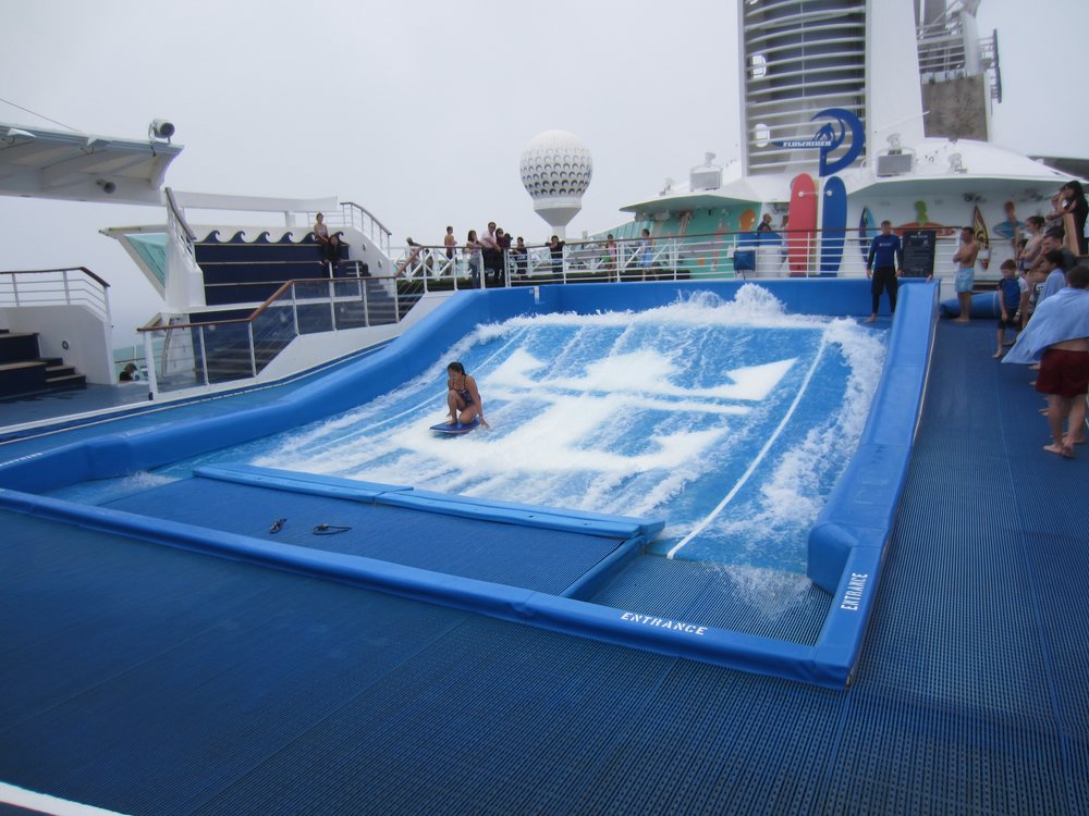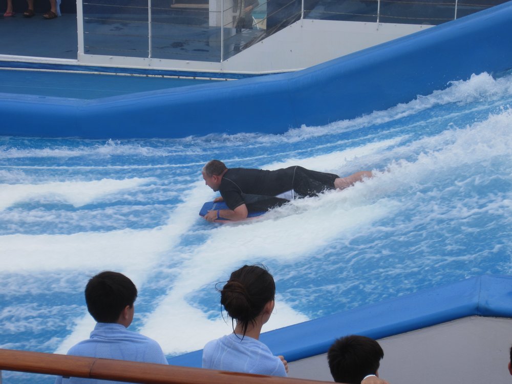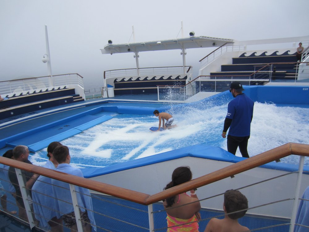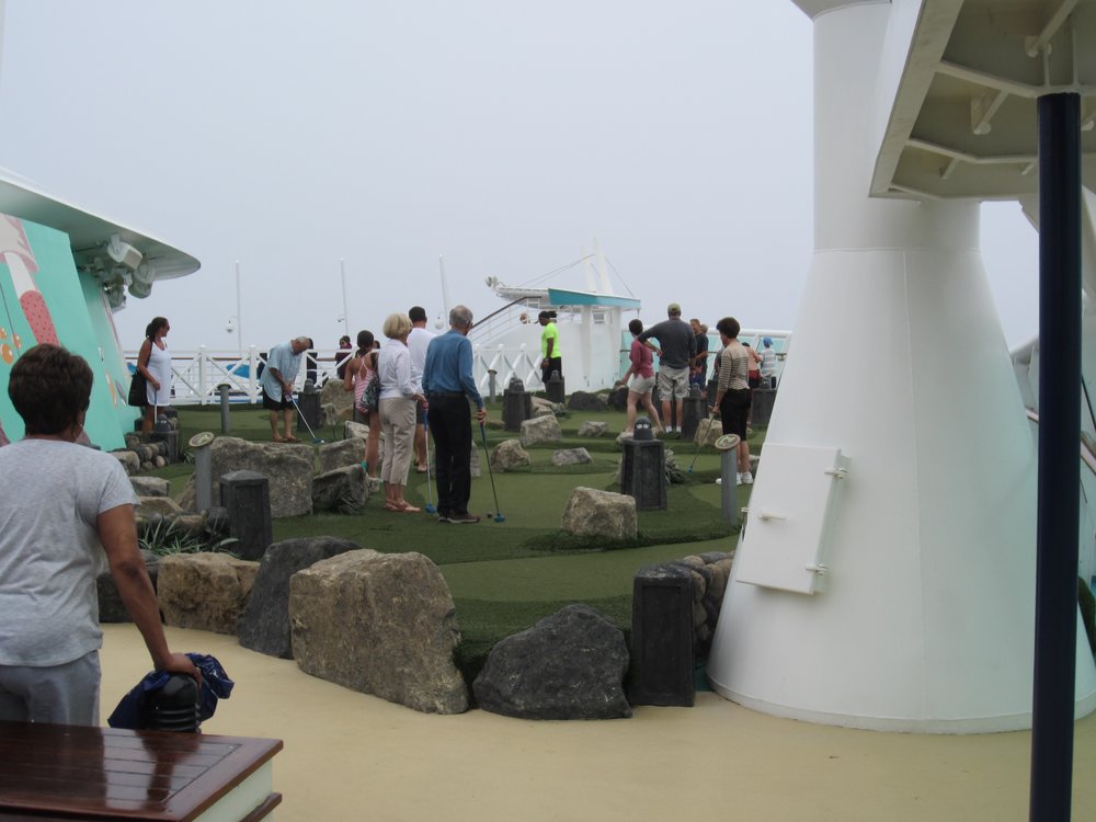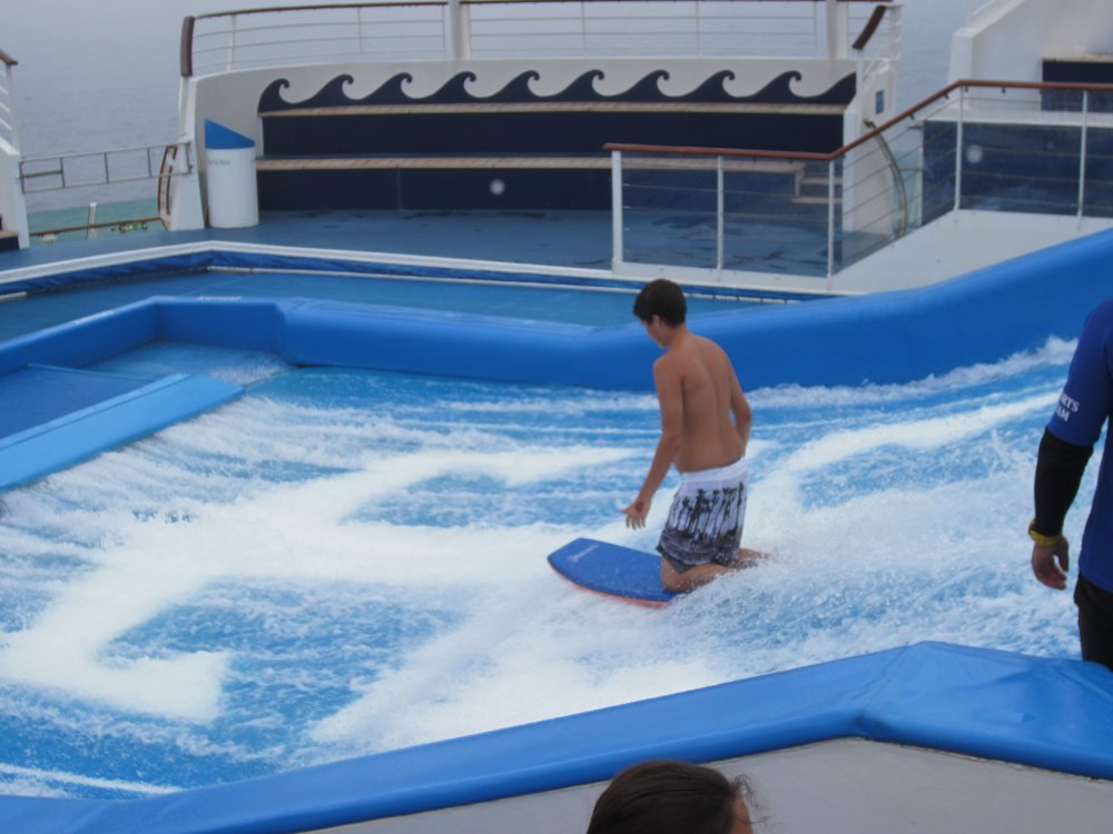 heute ist der insgesamt 3. Seetag. Leider hat das Wetter (wieder mal) nicht mitgespielt. Es war bis gegen 15:00 Uhr so neblig, dass man kaum 50 Meter weit aufs Meer schauen konnte. Jetzt könnte man meinen, bei ca. 3.600 Passgieren an Bord wird es verdammt eng. Aber nein, durch die verschiedenen Aktivitäten die angeboten werden, verläuft es sich sehr gut. Selbst wenn der Außenbereich nur eingeschränkt nutzbar ist, da zu kalt. Wir haben es endlich geschafft, uns den Flow Rider anzuschauen und die Kletterwand etc., guckst Du Bilder hier: