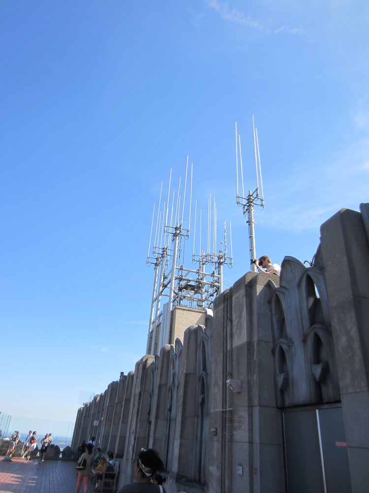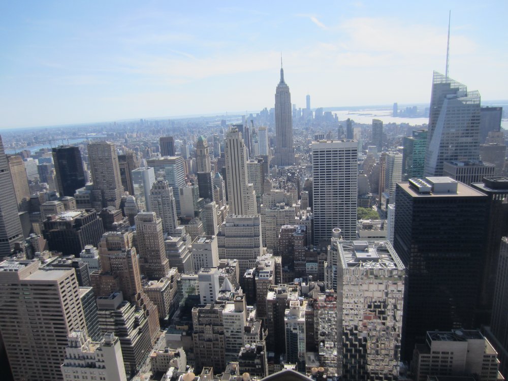 Wir gingen wieder Richtung Hotel bzw. Central Park und kamen überein, das Rockefeller Center mit der Aussichtsplattform „Top oft he Rock“ zu besuchen (guckst Du: http://www.topoftherocknyc.com) . Wir gingen die „Ave. of the Americas“ entlang und mussten irgendwann einen Umweg gehen, da sie teilweise gesperrt war. Also suchten wir weiter den richtigen Eingang am Rockefeller Center (das Center besteht aus vielen Gebäuden, über 2 Blocks verteilt). Welch Glück, wir fanden zunächst das Restaurant „Billys Burger“, welches für seine Burger sogar von CNN prämiert ist. Also rein und ausprobieren. Hat sich gelohnt, war echt sehr gut. Selbst das Hausbier ging 🙂 . Die Ecke rum fanden wir die Rockefeller Plaza mit Eingang zur Plattform, das Ticket kam 30 $ pro Nase und so ging es mit dem Aufzug in den 67. Stock. Natürlich mit Show im Aufzug, Licht und Laser. Oben angekommen, schossen wir Bilder ohne Ende und einen Video gibt’s auch mit Rundumsicht zum Central Park und auf der anderen Seite zum Empire State Building. Guckst Du Bilder: