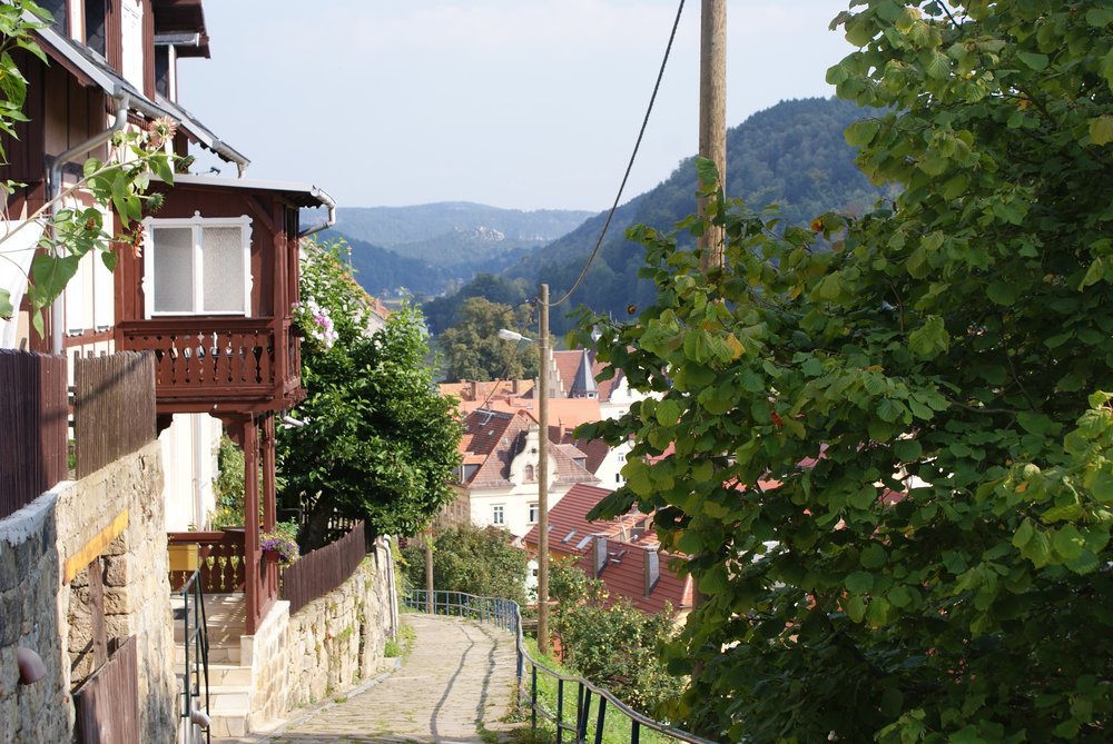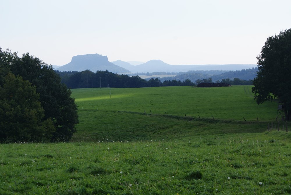 Vormittags erkundigten wir uns zunächst beim Tourismusbüro im Ort über die Buchungsmöglichkeiten. Da wir ja auch wandern wollten, entschieden wir uns für die geführte Wanderung am Dienstag. Den Wanderführer -ein pensionierter Mann- trafen wir Morgens auf dem Kirchplatz, es kamen noch zwei Jüngere Männer mit in Turnschuhen. Die Wanderung sollte ca. 3 Std. dauern, es ging mitten hinein ins Elbsandsteingebirge. Eine kurze Rast in der Mitte und wenig später waren wir auf den Feldern rund um Wehlen unterwegs. Kurz vor Ende haben Birgit und ich gestreikt, wir waren einfach fertig und gingen eine Abkürzung gen Heimat. Er ging mit den zwei Jungs noch in den Steinbruch und zur Ziegelei. Wir waren froh, als wir wieder daheim waren weil die Füße qualmten! Hier mal ein paar Bilder von unterwegs, guckst Du: