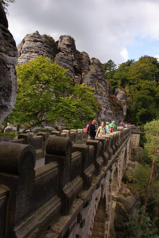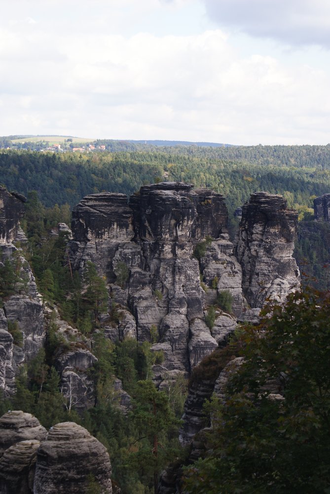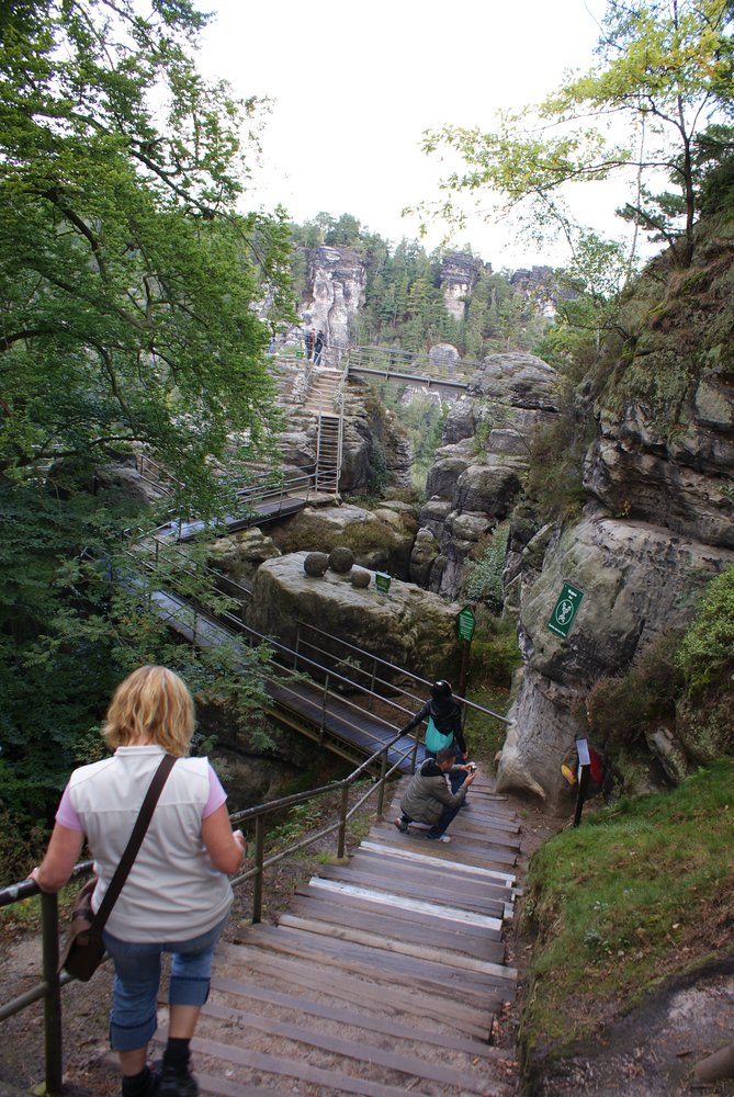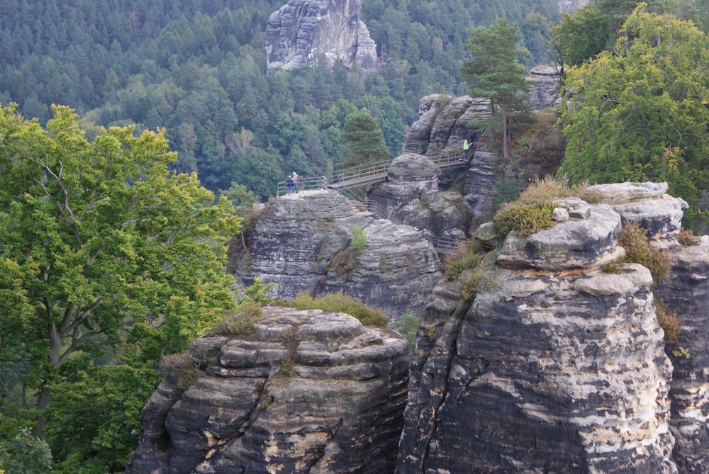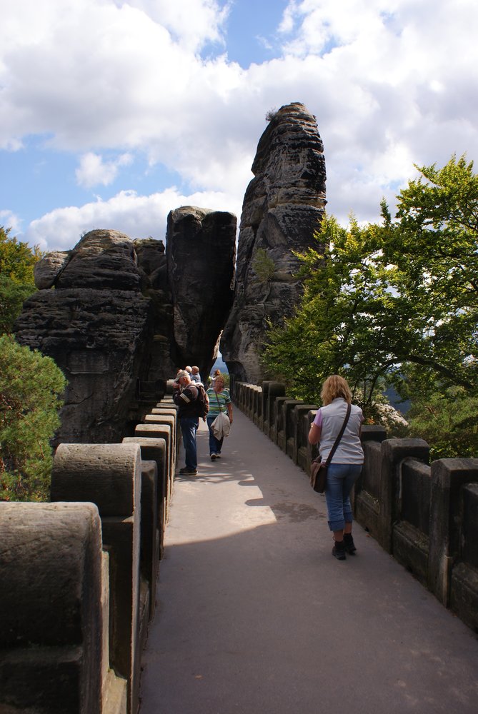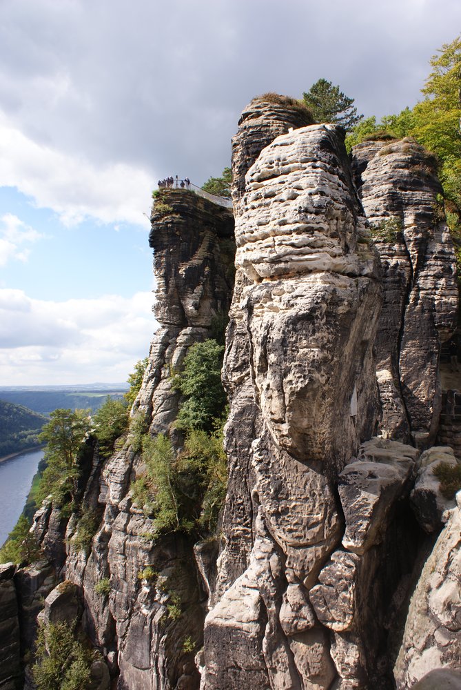 Am nächsten Tag (Donnesratg) sind wir auf eigene Faust los, Richtung „Bastei„. Kann ja nicht so schlimm sein, da wir sie quasi vom Balkon aus sehen konnten. Es ging ganz schön bergauf, Birgit hat geschimpft. Aber der Weg hat sich gelohnt, sind wir doch ohne technische Hilfsmittel -wir hätten auch den bequemen Touribus nehmen können- da rauf gekommen. Tolle Aussicht und wiklich lohnenswert hier rauf zu kommen. Hier ein paar Bilder dazu, guckst Du: