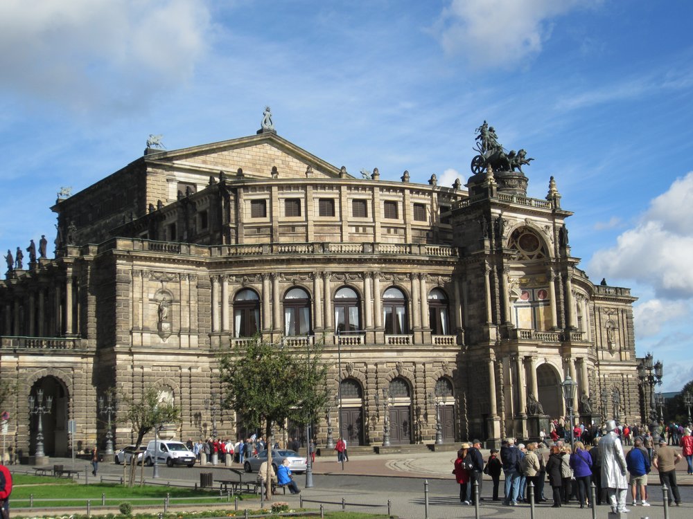 Auch die geführte Stadtführung in Dresden mit Zwinger und Semperoper haben wir im Touristbüro gebucht. Reservierung ging okay, Tickets für die S-Bahn haben wir auch gleich bekommen. Am Bahnhof angekommen trafen wir die Führerin und bekamen jeder unser persönliches Headset. Schon praktisch, du kannst dich bis ca. 20 Meter von ihr entfernen und so quasi alles „alleine“ entdecken während sie dir die Infos ins Ohr sendet. Es ging zu Fuß zum Zwinger, anschließend an der Semperoper vorbei quer durch Dresdens Altstadt zur Frauenkirche. Anschließend ging es entweder ins blaue Zimmer oder in die Semperoper. Die wollten wir unbedingt sehen und so bakmen wir unsere Tickets für den Gruppeneinlaß in die Oper. Schon beeindruckend, was die hier alles aus „Plaste“ gemacht haben 🙂