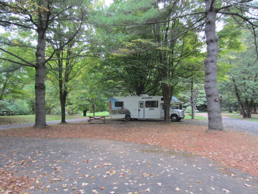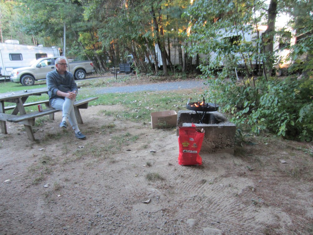 Oben angekommen, hatten wir eine Sicht von ca. 10 Metern, der Tower war weg. Die Wanderrunde fiel also aus, wir wollten keine „Seilschaft“ bilden 🙂 Das nächste „Ziel“ lag auf dem Weg nach Montreal, ein Campground in Lake George (New York). Wir fuhren auch dort hin, obwohl wir ja geplant einen Tag zu früh sind. Der auserkorene Platz war doof, da zu nah an der Strasse, also los ging die Suche (offline!). In einer mitgenommenen Zeitschrift /Werbeblättchen der Gegend waren noch 2 weitere Campgrounds verzeichnet. Der eine zu, der andere State Park (also kein Strom/Internet, das wollten wir aber haben), der Ranger empfahl uns dann diesen hier: King’s Philippe, ca. 2 Meilen weiter. Hier sind wir nun, mit Strom, Internet und allem Drum und Dran. Ich habe noch auf keinem Platz so saubere Duschen und Toiletten gesehen, das ist echt toll.