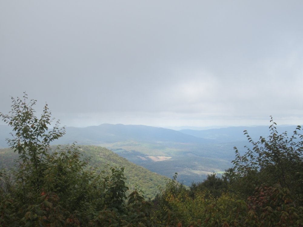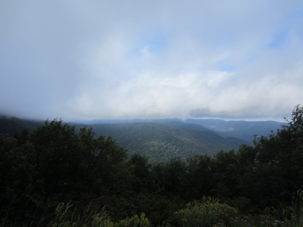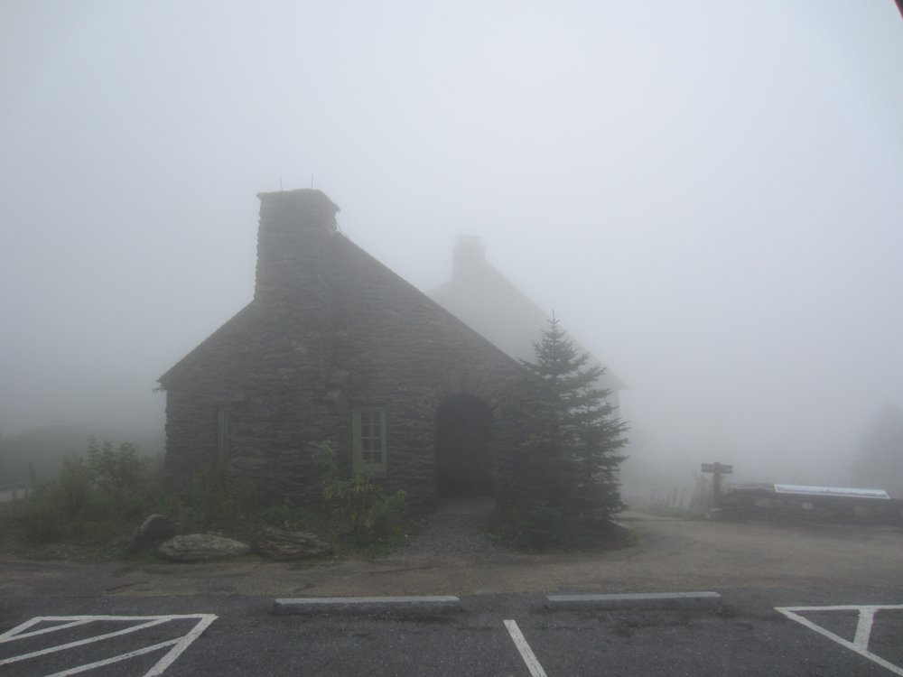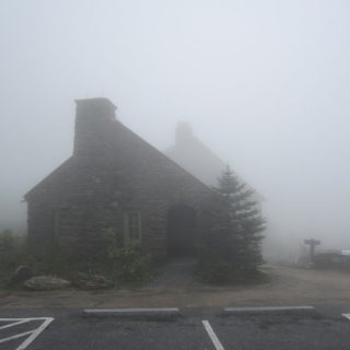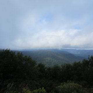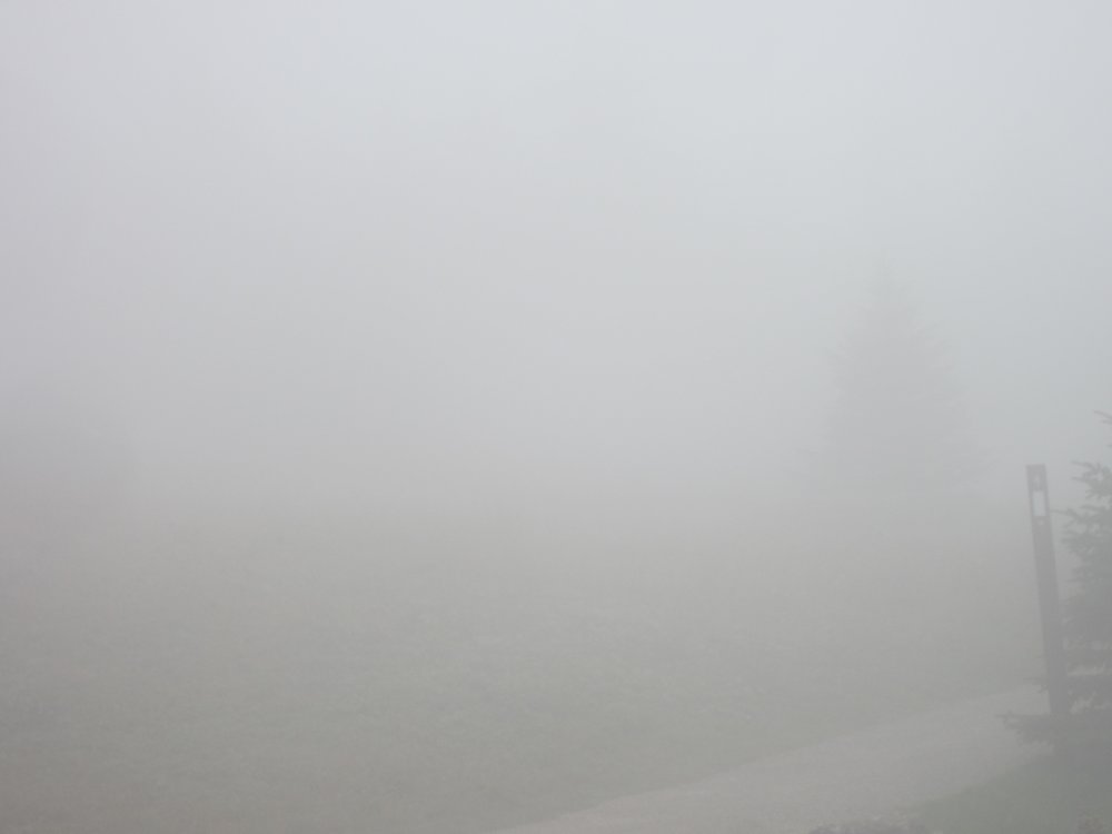 Nach dem Mass MoCa sollte es hinauf zum Mt. Greylock gehen, bis zum Gipfel und dort dann eine kleine Wanderrunde drehen (guckst Du: https://de.wikipedia.org/wiki/Mount_Greylock ). Auf dem Weg zum Gipfel kamen uns ein paar Wolken entgegen. Wirklich!