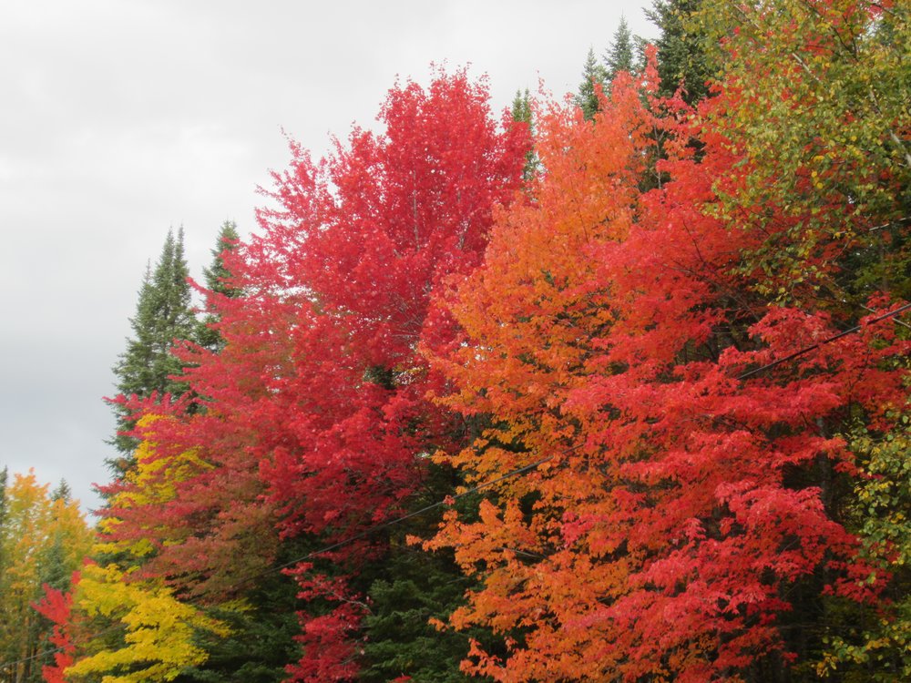 Aber wisst ihr was?? Das Wichtigste war: wir waren schon mitten drin, im Indian Summer!! Es fing schon in den kanadischen Hügeln etwa 1 Std. vor der Grenze an, die Wälder brannten, die Bäume leuchteten in allen nur erdenklichen Facetten zwischen Grün, Gelb, Orange, Rot bis Lila!