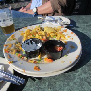 Als die Kellnerin -Gretchen- sie heisst wirklich so!! an unseren Tisch kam, staunte sie. Sie hätte es noch nicht gesehn, dass zwei diese Nachos soooo leer bekamen 🙂 sie applaudierte uns.