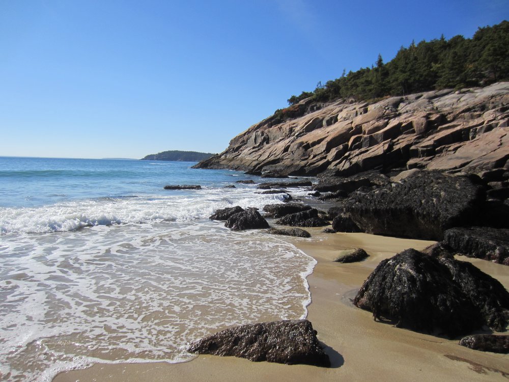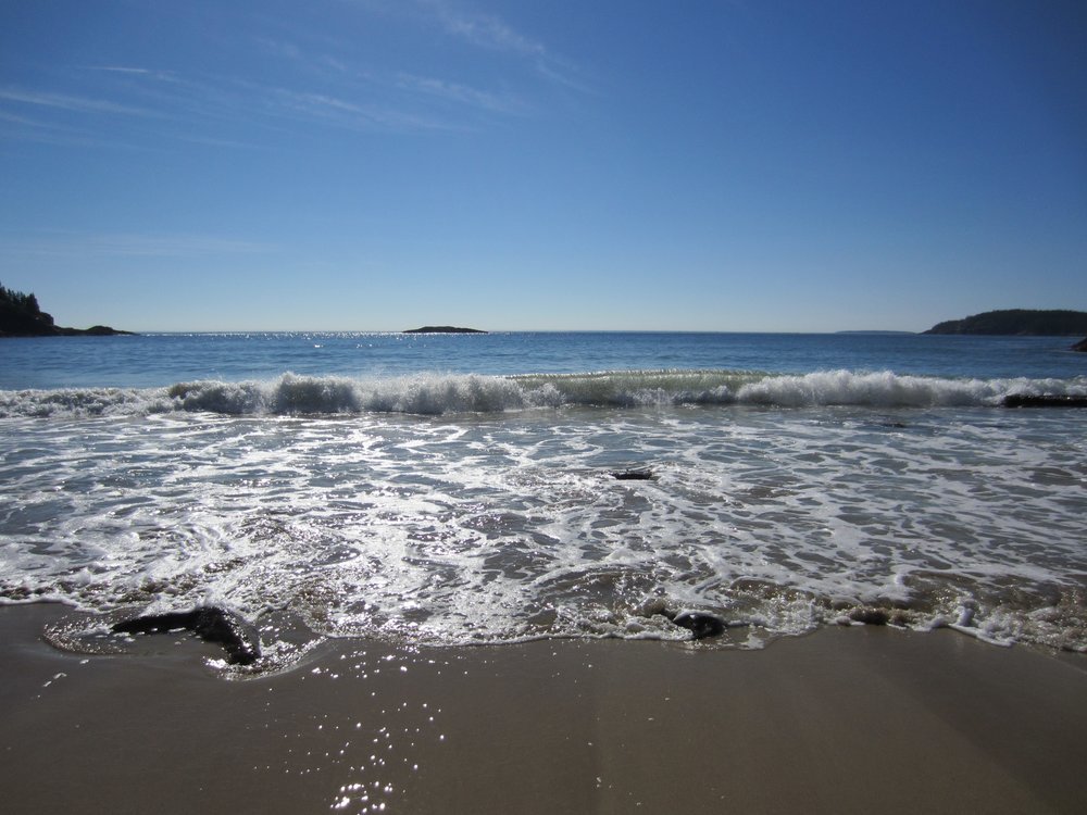 Wir wollten denselben Weg gehen wie voriges Jahr, nur diesmal von „otter cliffs“ nach „sand beach“, also bergrunter. Eigentlich ist heute wesentlich mehr „Summer“ als „Indian“ 🙂 Mit knapp 22 Grad, dem schönen ocean und dem tollen Strand sehr sehenswert. Haben wir ein Schw… mit dem Wetter, zumindest bisher.