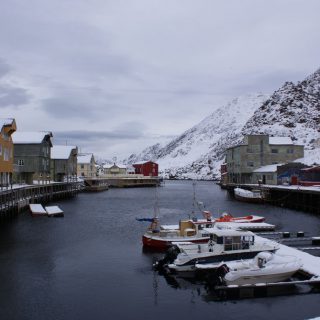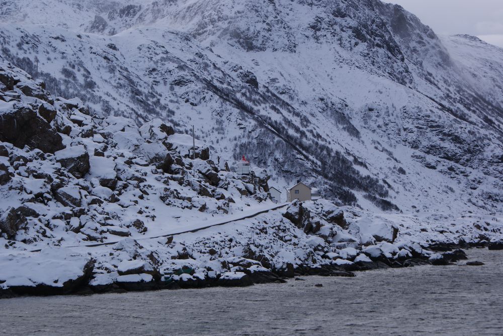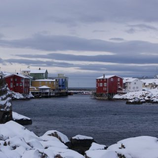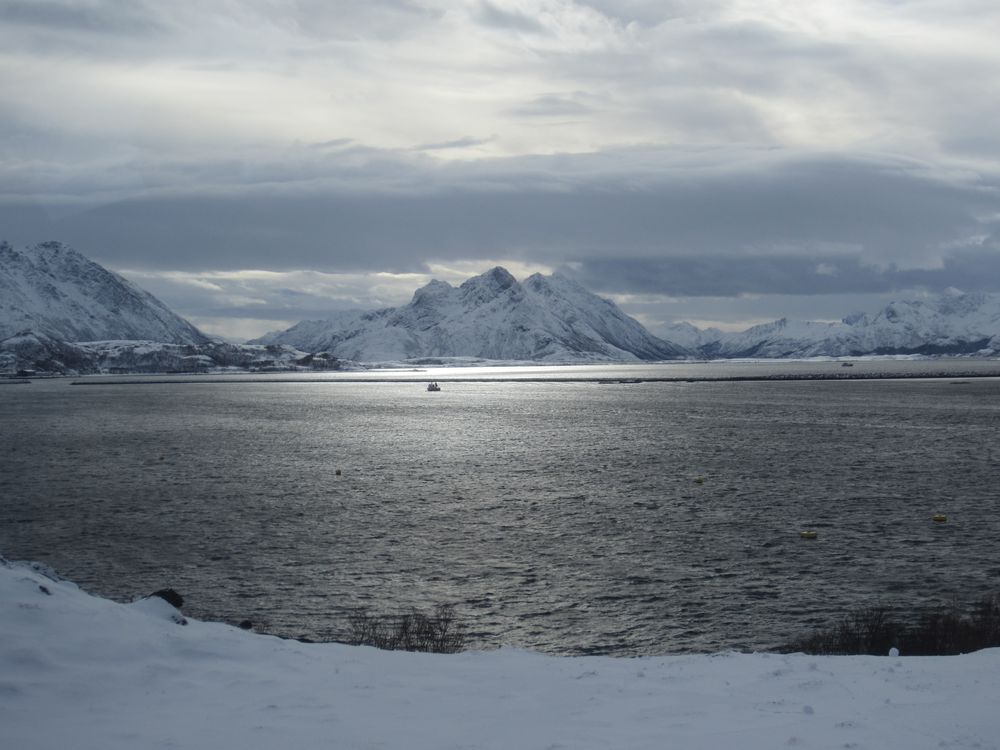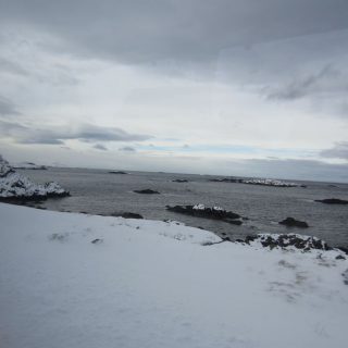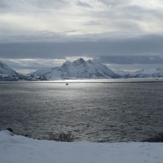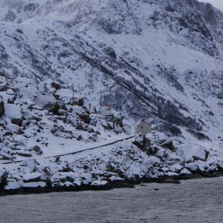 Wir fuhren durch tolle Winterlandschaften, an Fjorden vorbei. Schöne Fahrt. Kaum angekommen, begrüßte uns ein Seeadler in der Luft über uns. Er war schon ein wenig weit weg, als ich die Kamera -endlich- schussbereit hatte, aber ich meine, man kann ih n durchaus erkennen. Guckst Du Bilder zum Ende der Welt mit Seeadler hier: