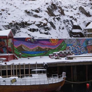An dieser Stelle einen Gruß an Jorge, der gerne Stockfisch isst. Ich konnte mich bisher nocht nicht dazu überwinden. Am Schiff angekommen, erstmal umziehen, Toilette -bzw. umgekehrt!- und dann zum Mittag. Der Plan sah vor, am Nachmittag noch die Stadt zu erkunden. Gesagt, getan. Sortland wird auch die „blaue Stadt“ genannt, zum Millenium hat man hier viele Hausfassaden in verschiedenen Blautönen angemalt, eine Kunstaktion. Wir haben viele davon fotografiert und auch noch den alten Glockenturm von 1476 gefunden, anschließend die alte Kirche besucht und dann hatten wir keine Lust mehr. Hier einige Bilder dazu: