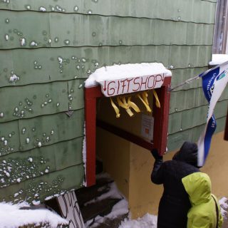 Wir gingen im Pulk durch die Stadt und die Reiseleiterin erzählte uns jeweils die wichtigen Dinge dort. Insgesamt hatten wir 1,5 Std. Aufenthalt dort. Es gab sogar einen Shop, ein Cafe und ein Klo, vor diesem reihten sich zunächst viele Gäste in die Warteschelange ein. Birgit hat in dem „Shop“ eine Karte gekauft. Der Shop hatte übrigens knappe 10 qm². Die wurde dann im Restaurant bezalt und wir sind schnell wieder raus, keine Lust auf Kaffee und Waffeln. Also liefen wir noch was rum, haben -so mehrere Augenzeugen- Wale aus der Ferne gesehen und landeten schließlich wieder im Bus. Während der Fahrt zurück kamen wir an einer riesigen Anleg zum Fischtrocknen vorbei, hat komisch gerochen dort 🙂