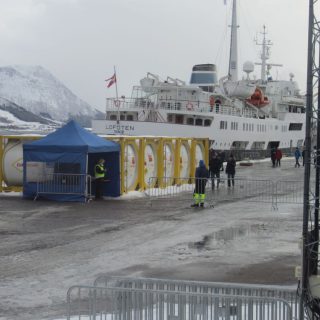 Vor uns lag übrigens die „Lofoten“, das älteste Schiff der Hurtigruten, echt schön. Die Vesteralen sind mehr als 3 x so groß wie die Lofoten haben wir heute gelernt. Auf der letzten Cara-Tour vor 2 Wochen haben sie erst hier Nordlichter gesehen. Da es im Moment leicht bedeckt ist, bestünde ja auf eine erneute Sichtung echt Hoffnung, mal schauen…..