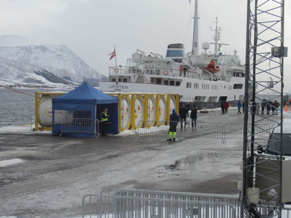 Unsere norwegische Reiseleiterin hat die ganzen 1,5 Std. über die Sehenswürdigkeiten am Wegesrand und viel Interessantes sowie Geschichte erzählt. Bei Nyksundf ist die Welt zu Ende, man blickt auf den Ozean Richtung Grönland, dazwischen nix. Nur Wasser und Horizont. Insgesamt waren wir mit drei Bussen unterwegs, unser war der letzte mit ca. 5 Minuten Abstand. Nyksund ist ein kleies Fischerdörfchen mit ca. 20 Einwohnern, heute kamen 5,5 Touris je Einwohner dazu 🙂