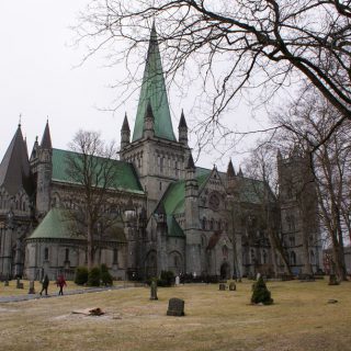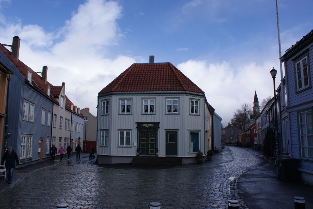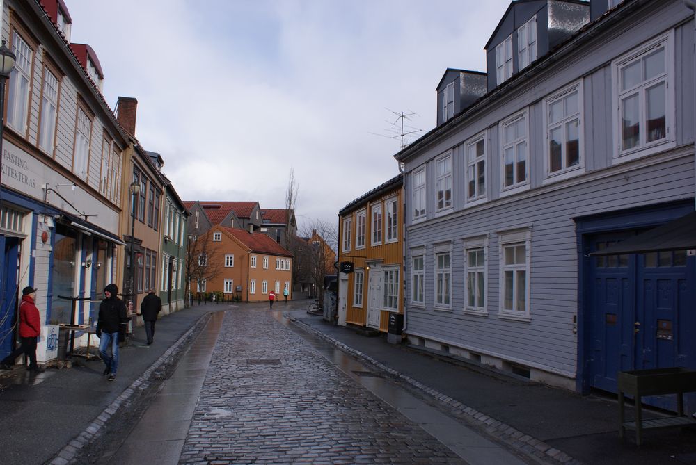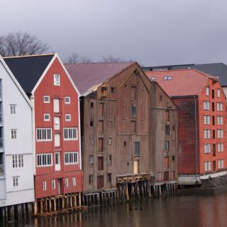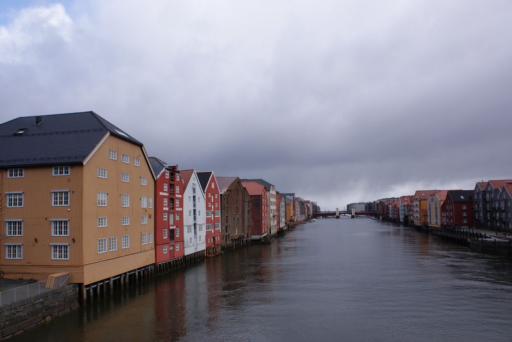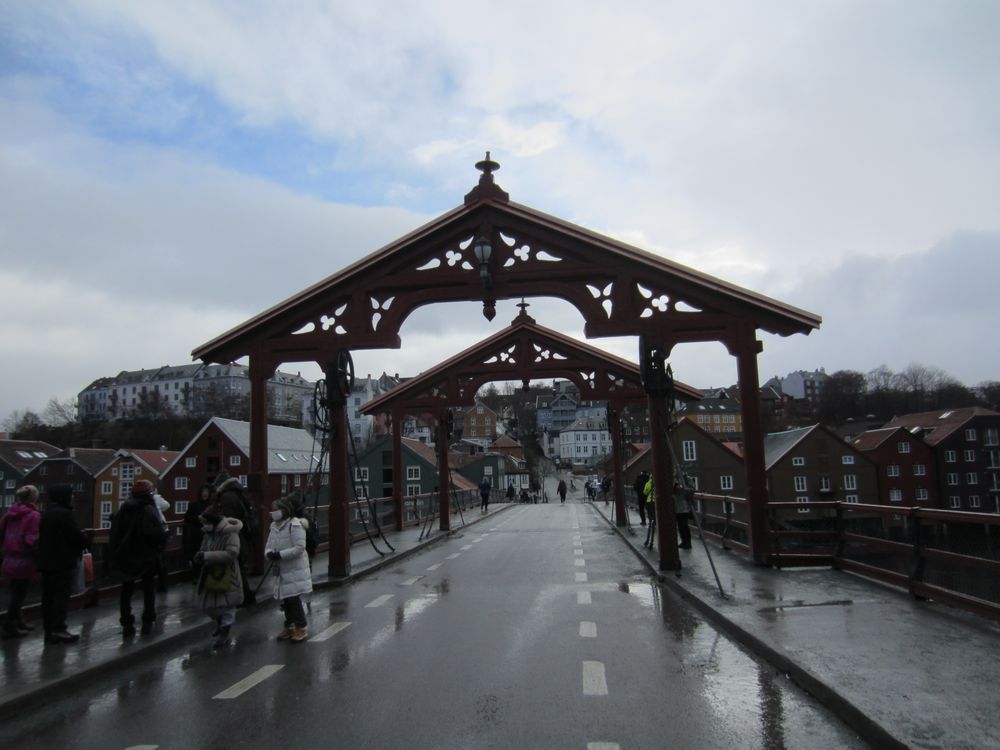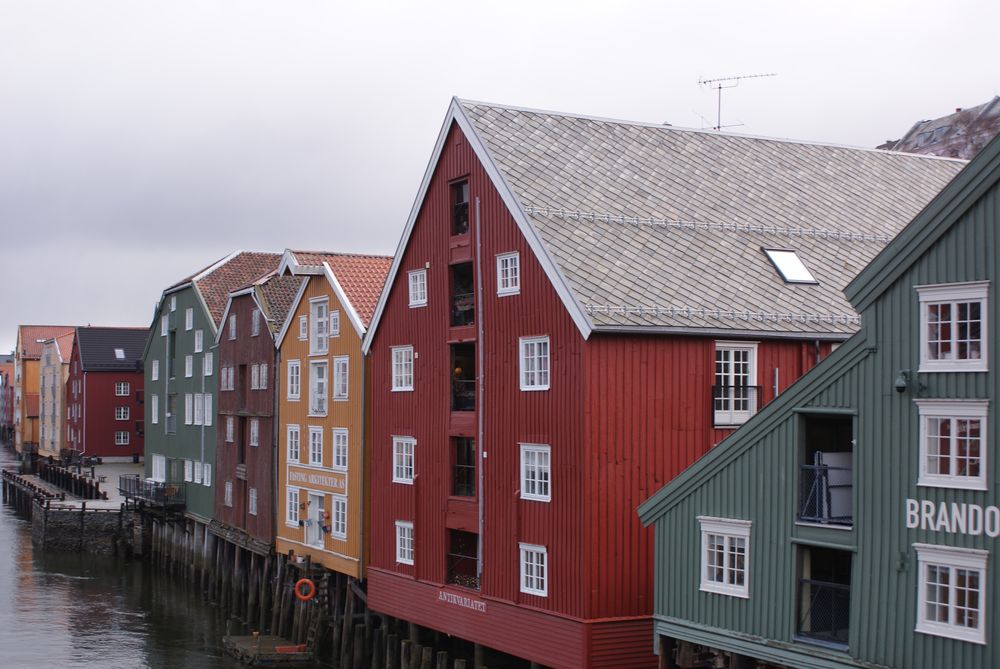 Zurück zu Trondheim: das ist ein nettes Städtchen, von einem Fluß durchzogen und vielen alten, bunten Holzhäusern. Wir gingen also Richtung Domkirche, die Krönungskirche der norwegischen Könige. Drin waren wir nicht, man durfte dort nicht fotografieren und es sollte auch noch Eintritt kosten. Für ein Gotteshaus? Naja. Einige Meter weitere überquerten wir über die älteste Brücke der Stadt den Fluß und waren im Alte-Häuser-Viertel. Den norw. Namen erspare ich Euch 🙂 Kann ich mir auch nicht merken……