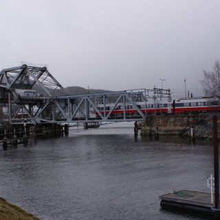 Nach der Festung sind wir noch das Viertel zu Ende gelaufen und dann zurück über die dritte Brücke Richtung Schiff. Kurz vor dem Schiff haben wir noch die besondere Eisenbahnbrücke betrachtet, durch die gerade ein Zug fuhr. Die ist von dem amerikanischen Architekten erbaut, der auch am großen Ontario-See einige Brücken gebaut hat. Weil die so schwierige Umstände dort haben. Wie gesagt, Vortrag besucht 🙂