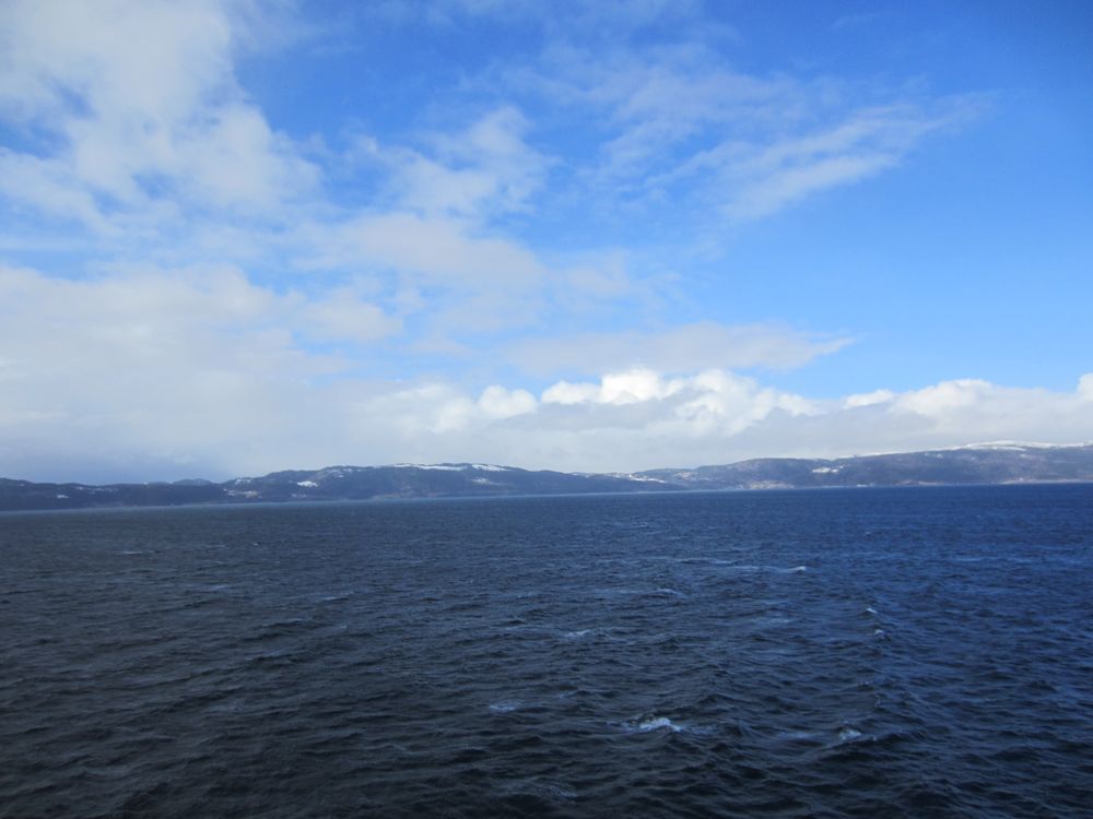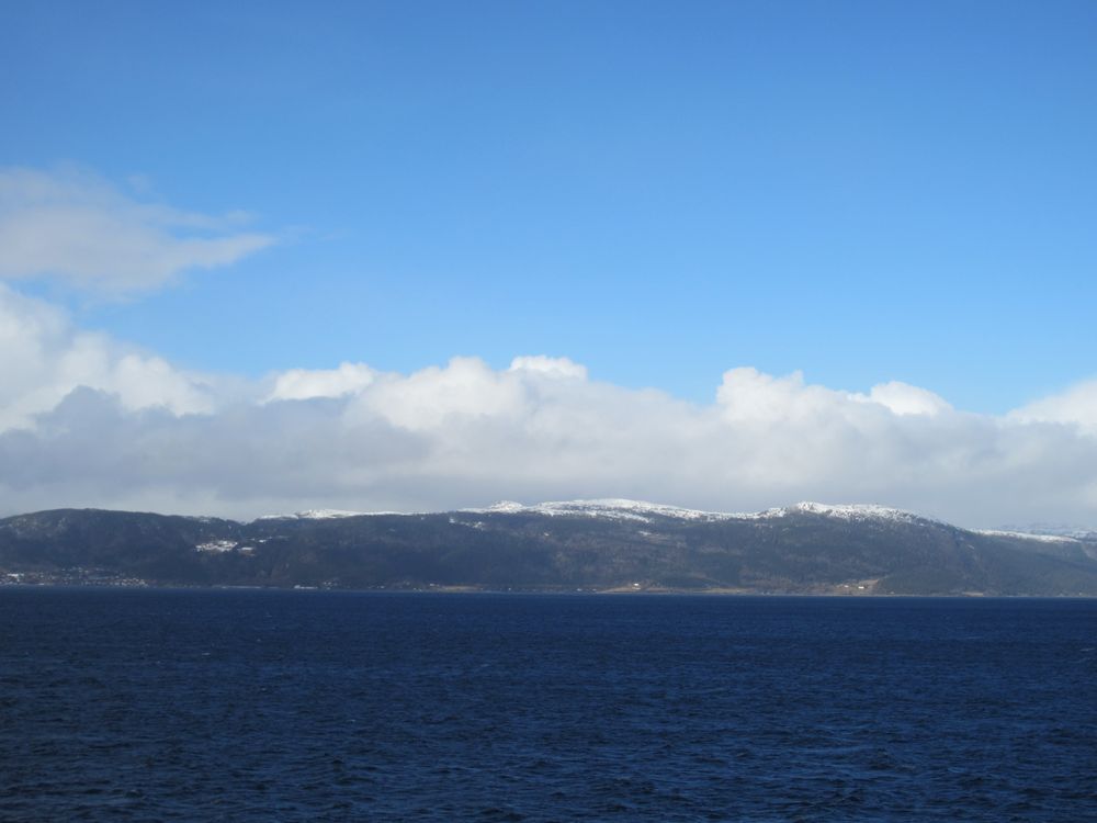 Genießen gerade die Ausfahrt durch den Trondheim-Fjord, seit 2 Std. bei stahlblauem Himmel, einfach nur schön.