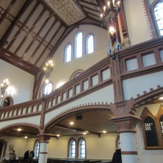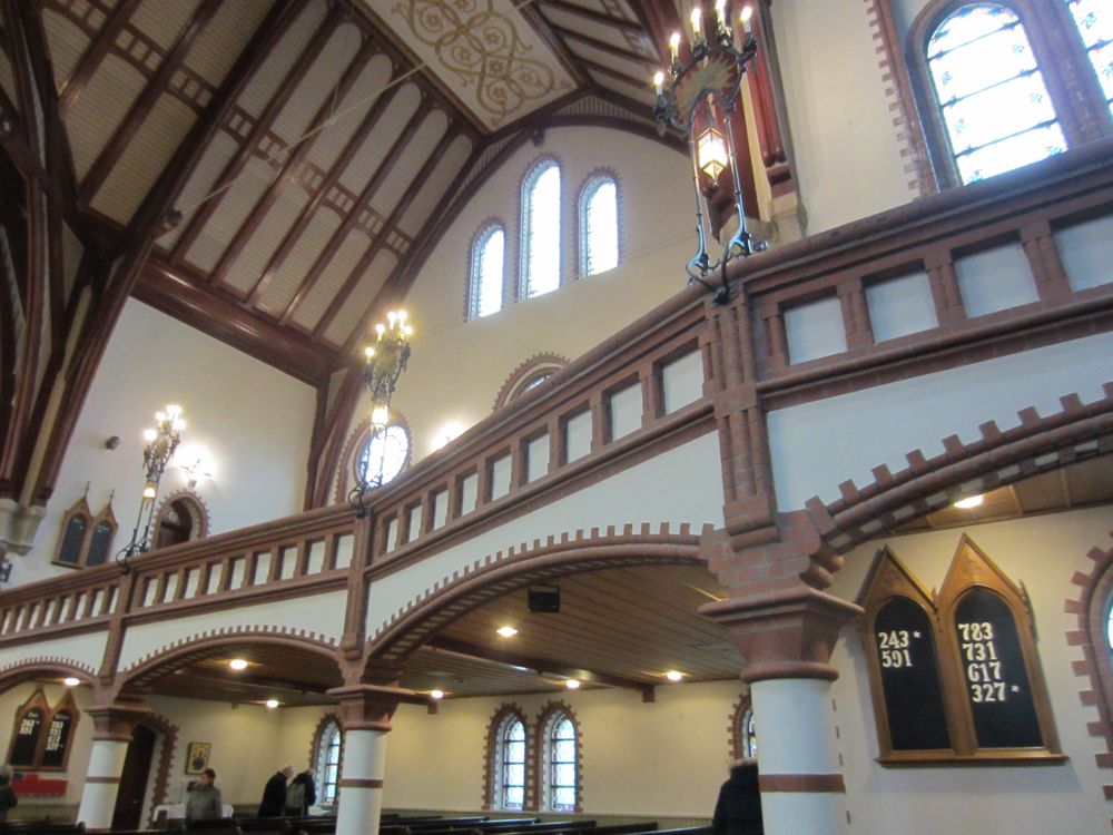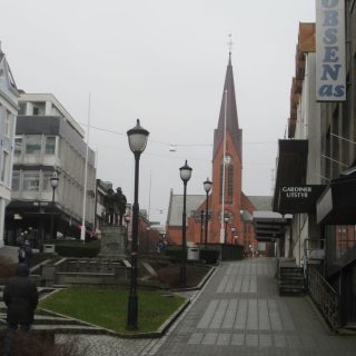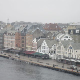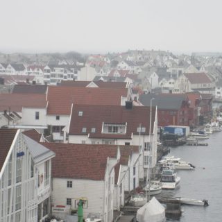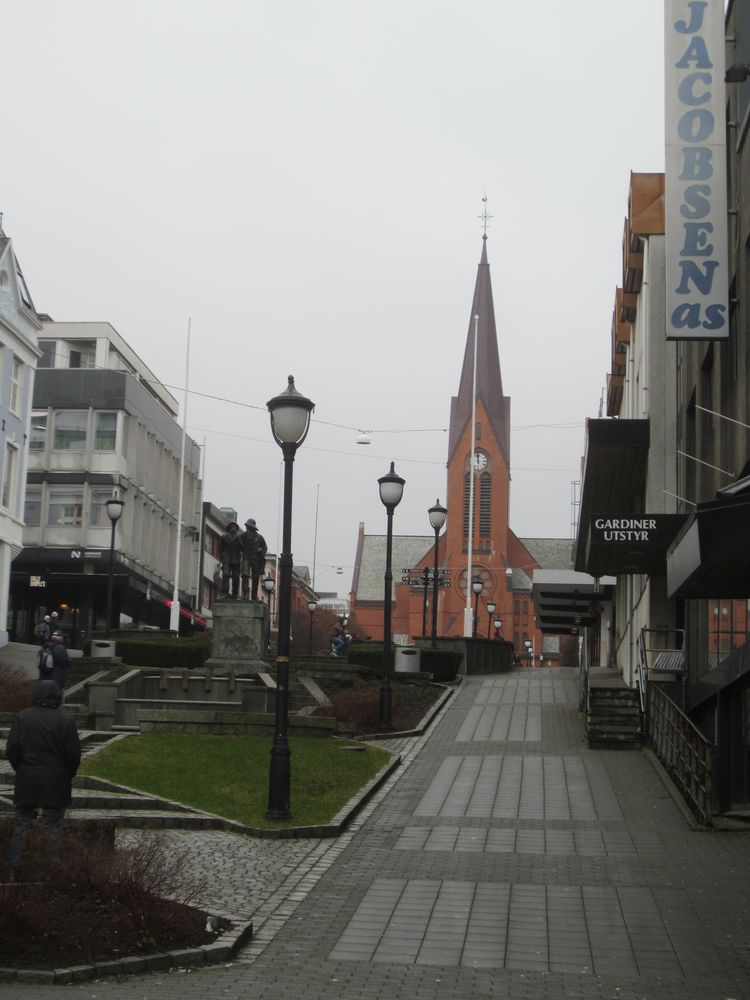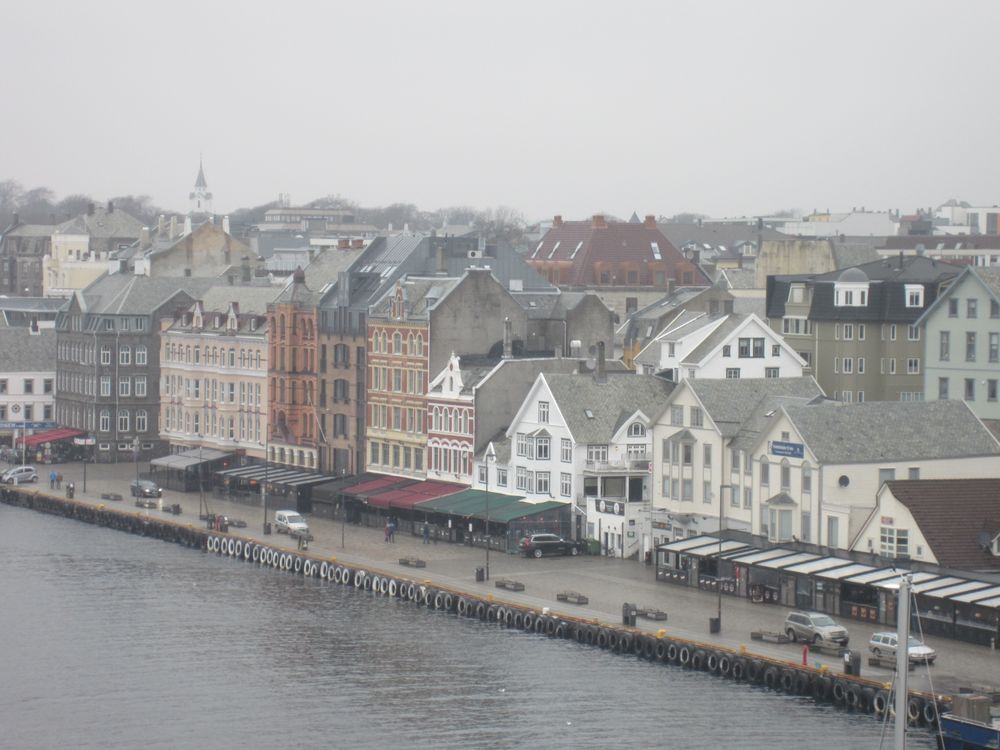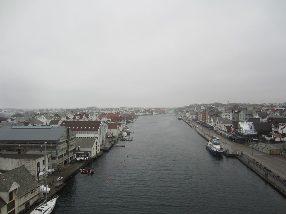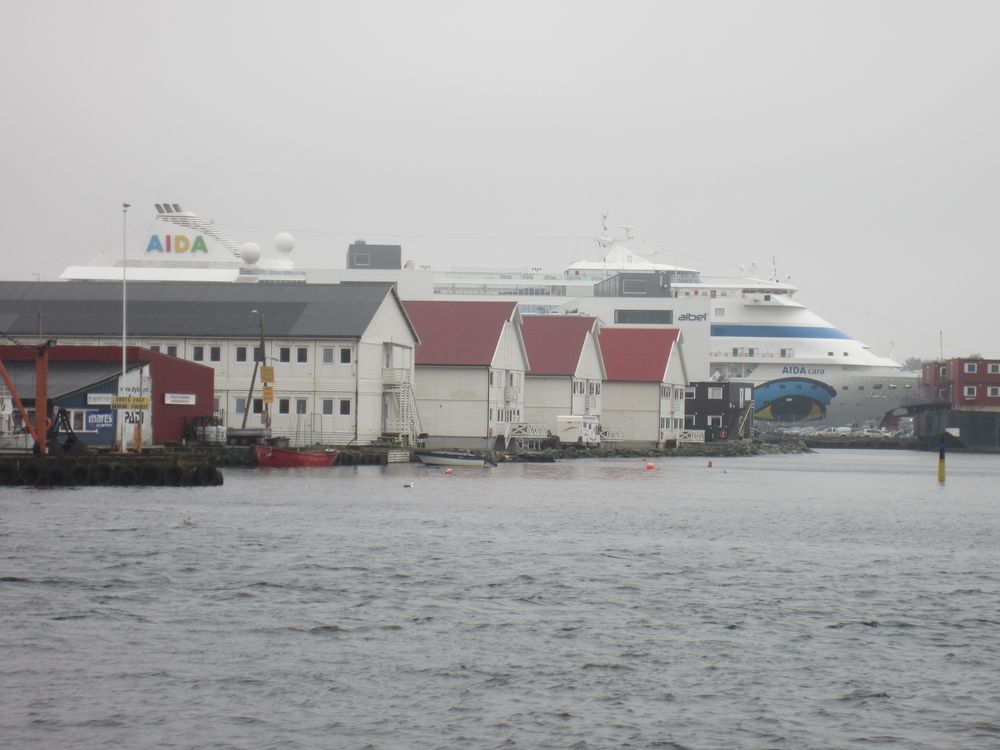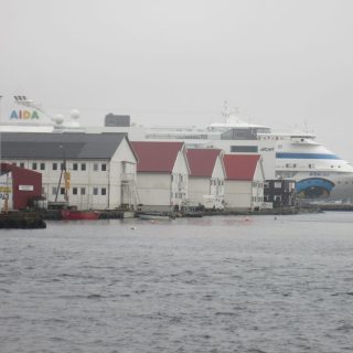 Haugesund hat uns mit Schiiiiiieeeetwedder begrüßt. Es war ein feiner Sprühnebel von Nieselregen bei ca. 9 Grad und relativ starkem Wind. Wir waren für 10:30 zum Landgang mit den Lieblingsnachbarn verabredet. Vom Schiff fuhr ein von den Norwegern organisierter Shuttlebus zur zentral gelegenen „Vor Frelsers kirke“. Die Kirche haben Sie extra heute für AIDA geöffnet, 2 nette Männer mit Erklärungen in deutsch im Eingang postiert. Norwegen halt. Haugesund hat die längste Einkaufsstrasse Norwegens, also wir wollten einen Megashopping-Tag machen 🙂 .
