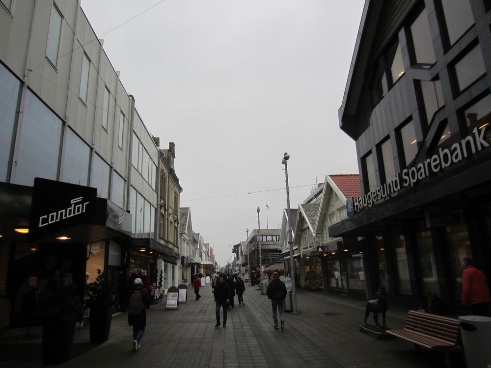 Für Norwegen wahrscheilich riesig, ich musste schmunzeln. Nunn denn, die Hafenmole haben sie ganz nett gemacht, einige Restaurants mit Außenbereichen etc. Zum berühmten „Haraldshaugen“ (http://de.visithaugesund.no/aktivitaten/haraldshaugen-p794713) war es uns zu Fuss bei diesem Wetter zu weit, also rein ins Einkaufscenter, noch Abschminktücher gekauft – natürlich nicht, ohne zu lamentieren…….
