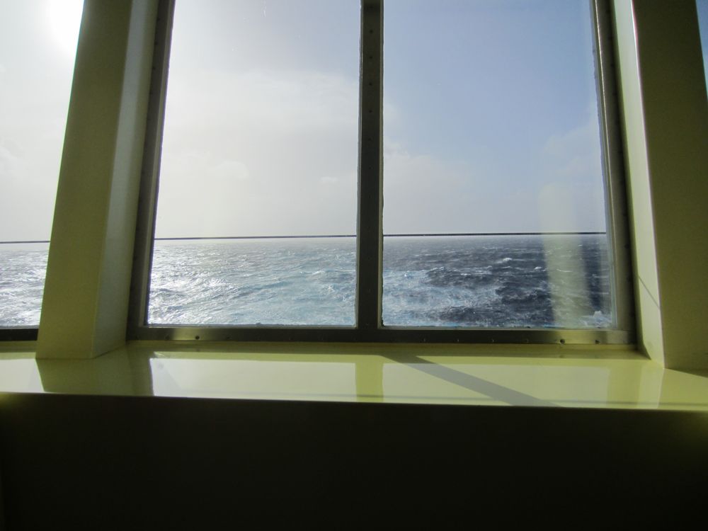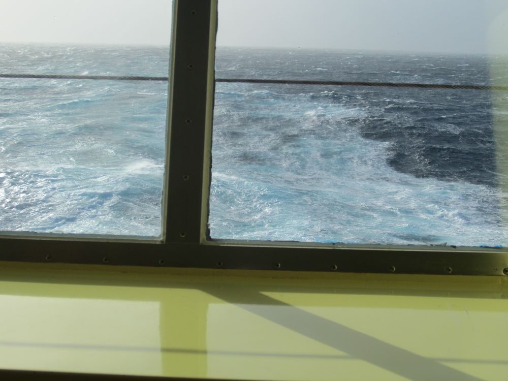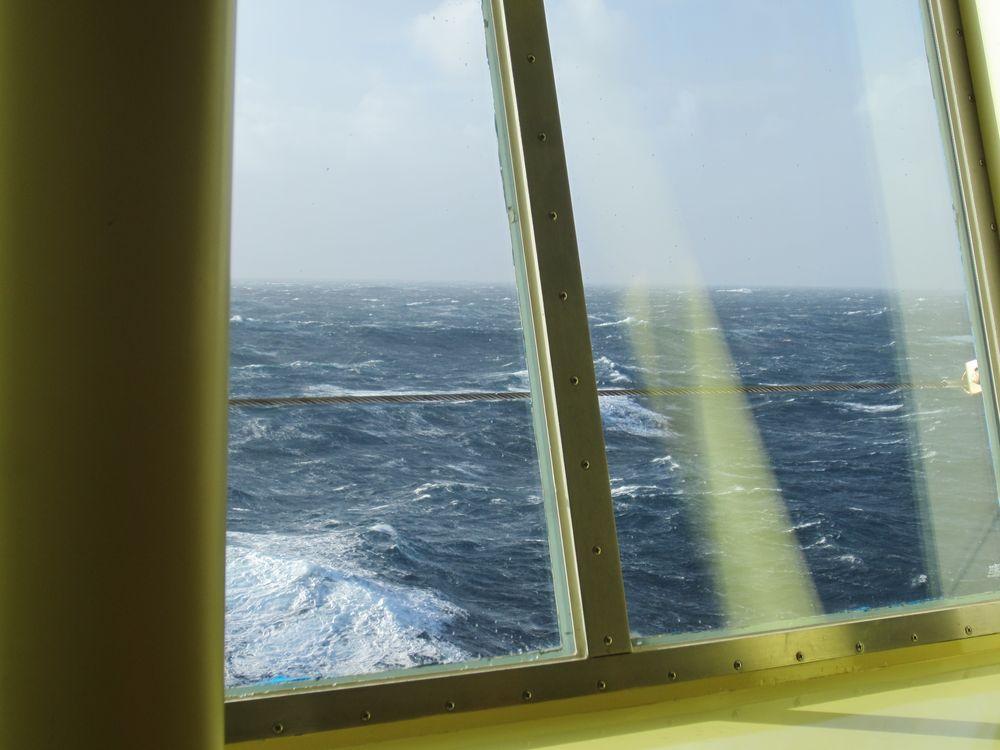 Dummerweise hat das mit dem Bericht schreiben vorhin nicht funktioniert, Akku leer 🙁 . Aber nun -18:00- ist er wieder voll und es wird vollendet. Zum Wellengang: gestern Abend, nachdem wir den Fjord von haugesund verlassen hatten, kachelte es mit Wellengang bis zu 9 Metern. Der Kapitän sagte, er würde schneller fahren, um der Wetterfront auszuweichen. Spät abends waren dann „nur“ noch 6 Meter, wie heute früh. gegen Mittag wieder 8 Meter, derzeit noch anhaltend. Aber es soll Nachts ruhiger werden….