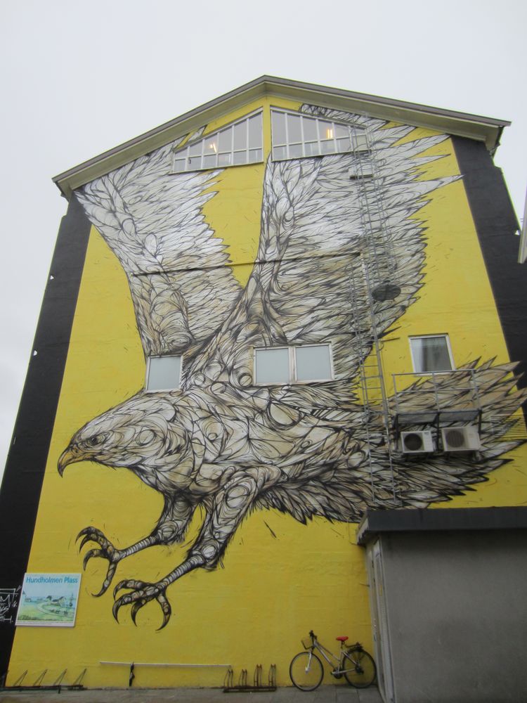 Bodö ist die „Hauptstadt“ der Seeadler, nirgends kann man mehr Seeadler in freier Natur finden als hier. Wir haben nur den auf der Hauswand gesehen 🙂