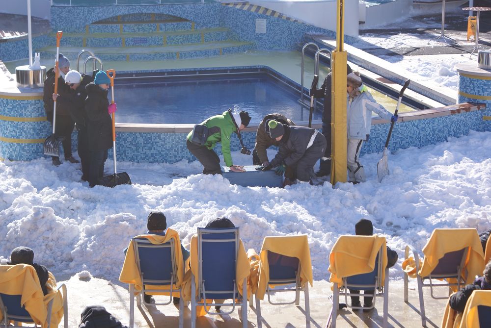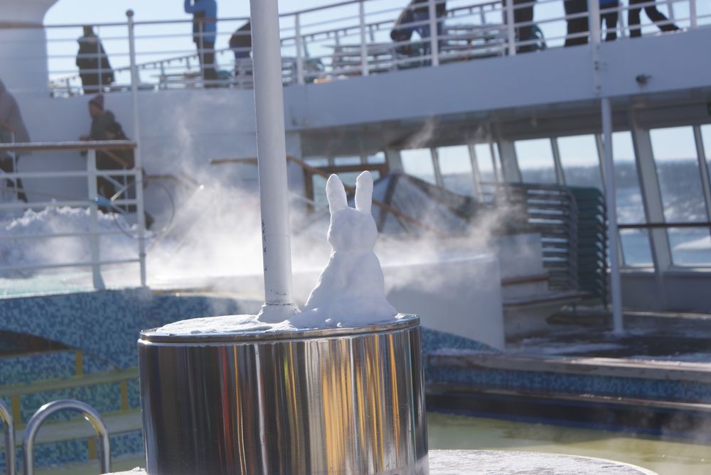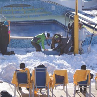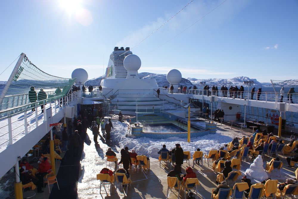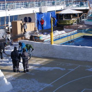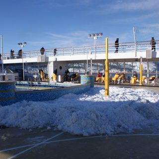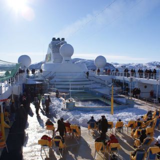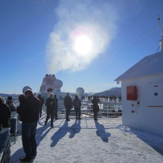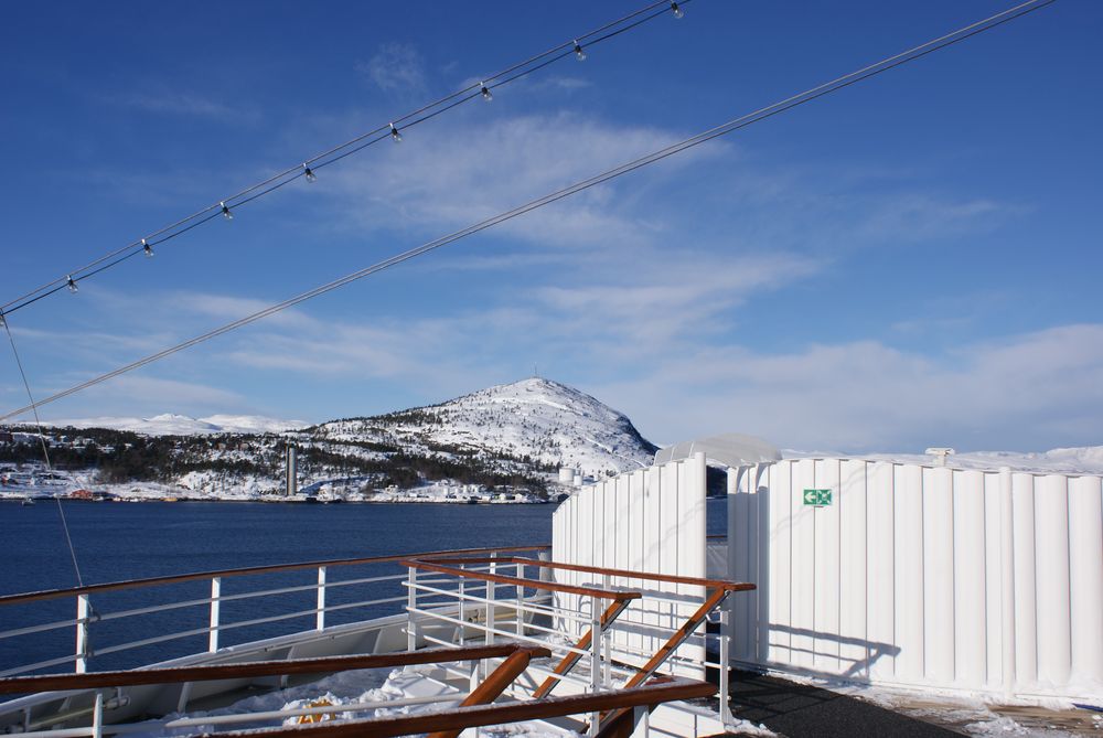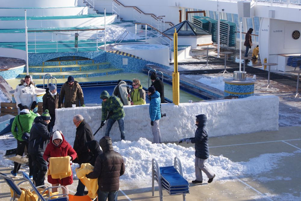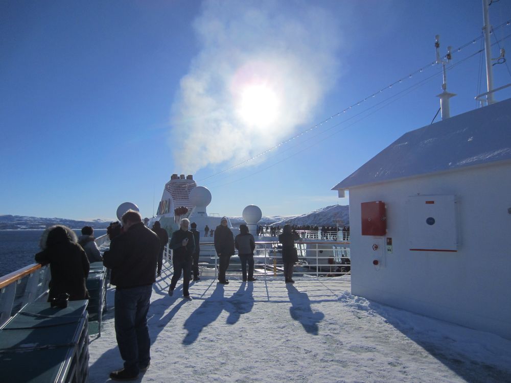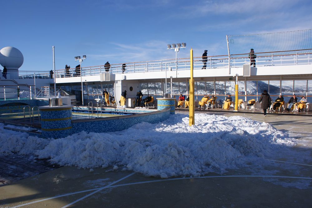 heute war nur noch Auslaufen um 10, der Bau der längsten „Schneebar der Weltmeere“ anschauen und ansonsten Seetag angesagt. Der Tag begrüßte uns mit einem stahlblauem Himmel, – 5 Grad und frischem Schnee auf dem Pooldeck der Cara. Eine Kreuzfahrt mit schneeschippendem Personal an Deck, hat auch mal was. Lange Rede, kurzer Sinne, hier einige Bilder vom Auslaufen und den tollen schneebedeckten Fjordbergen drumherum, tolle Aussichten:-) :