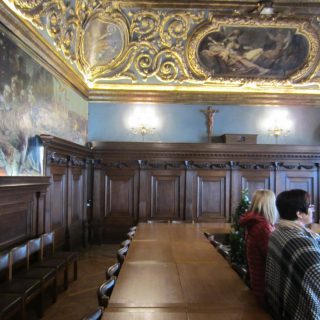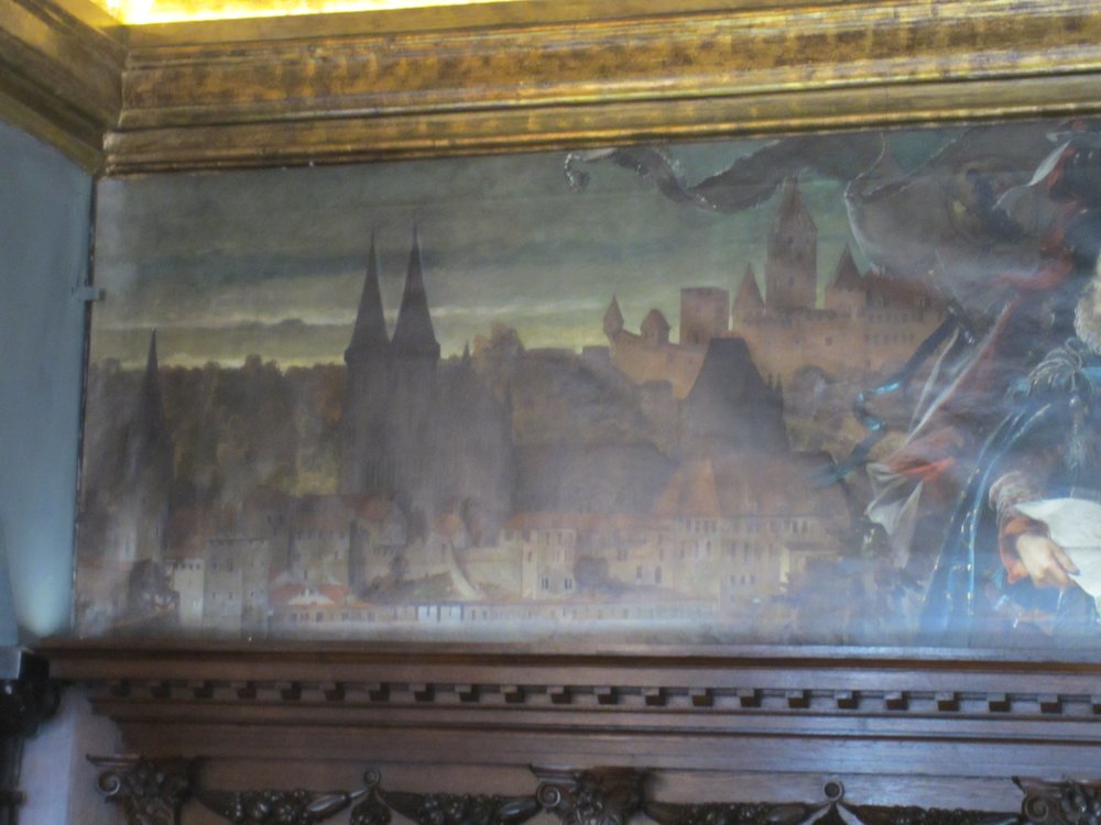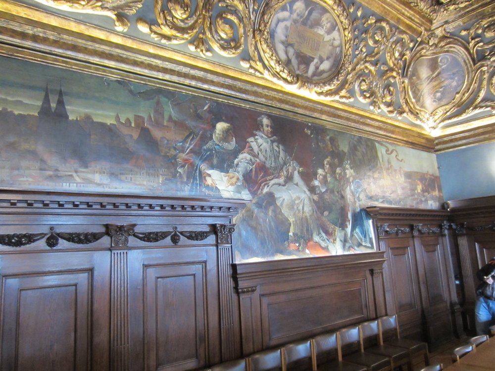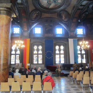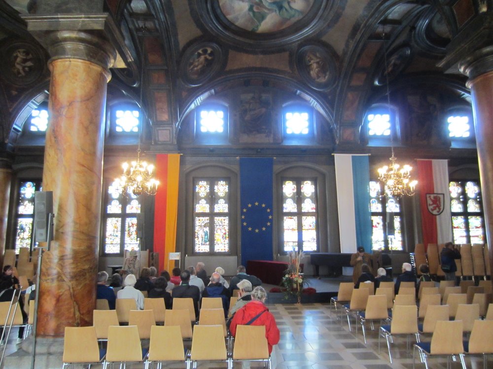 Die Marke im Fenster war von 1954, die über dem Fenster von 2013, gesehen?? Durch die Hölle ging es weiter Richtung Rathaus, am Ende der Hölle stand das „Hotel Wilder Mann“, wo einst Kaiserin Sissi für einige Tage nächtigte (kannst Du heute noch zu einem Schweinepreis drin schlafen, wer’s braucht) guckst Du Internet: http://www.wilder-mann.com . Der Preis war im Schaufenster, ich meine ca. 350 €, sind uns aber nicht mehr sicher. Es folgte der Besuch im Ratssaal, echt historisch und gediegen. Hier finden heute noch Ratssitzungen sowie Trauungen statt, wir hatten Glück, dass er heute für Besucher offen stand, hier ein paar Bilder dazu, guckst Du: