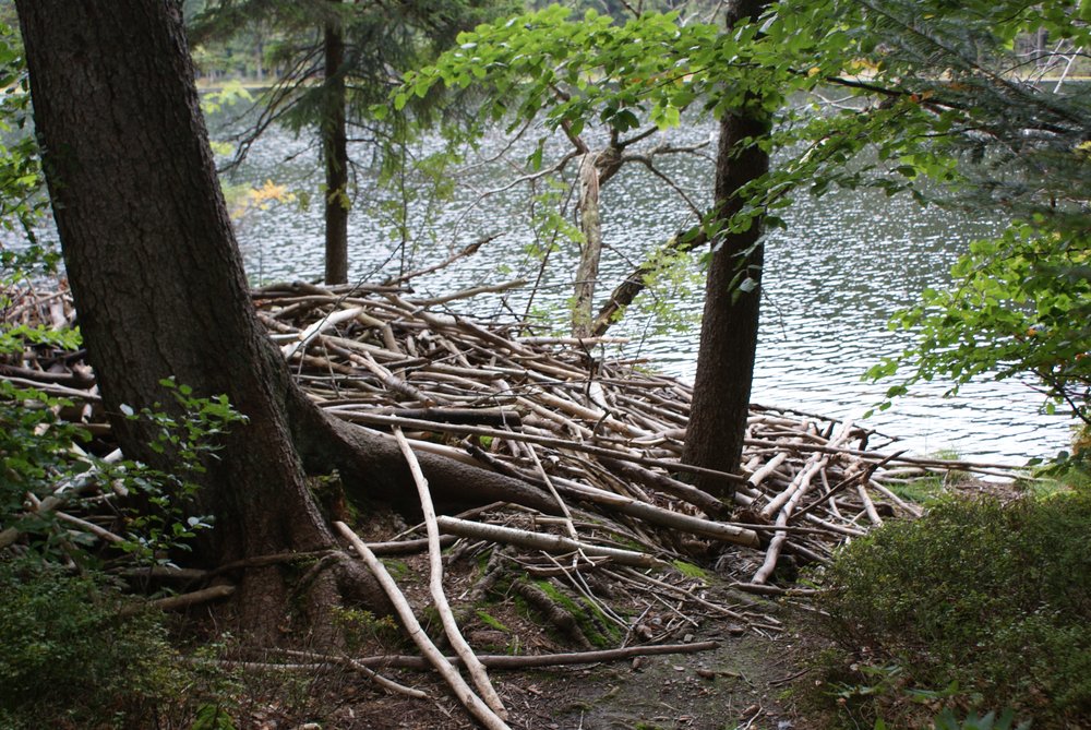 Am gr. Arbersee (es gibt natürlich auch noch den „kleinen Arbersee“, aber den kann man nicht mit dem Auto erreichen) ist Tourismus pur vorhanden. Auf einem Teil des Sees kannst Du Treetbötchen fahren, ein Teil im Osten ist abgesperrt, dort sind eine Art Moor auf der Oberfläche. Den See kann man gut umrunden, er ist aber nicht barrierefrei. Da alles unter Naturschutz steht, darf man den Weg natürlich nicht verlassen, muss Hunde anleinen, die Frau an die Hand nehmen etc….. Nach einer kurzen Strecke vielen uns ganz viele vom Biber geschlagene Äste und kleine Bäume auf einem Riesenhaufen auf, bestimmt eine Biberburg. Genug geschwätzt, guckst Du Bilder hier: