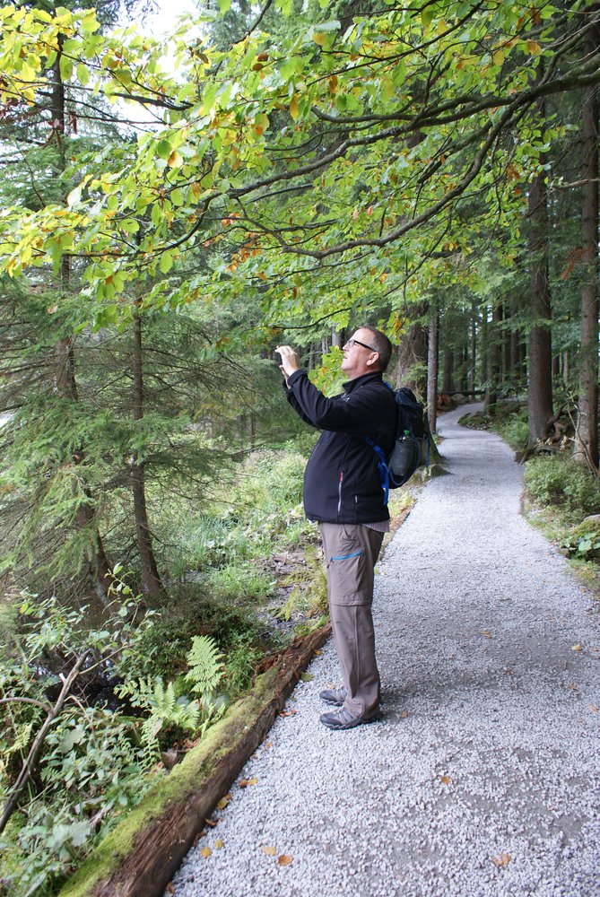 Heute hätte ich gerne den Hochfall, die zweitgrößten Wasserfälle im bayerischen Wald besucht. Eigentlich (!) eine kurze Wanderung von knapp 2 KM, für uns aber viiiiiieeeeel zu steil. Wir hatten ca. 300 Höhenmeter zu überwinden und nach knapp 1 KM stellten wir fest, dass dies zuviel für uns ist. Wir müsen dringend ins Trainingslager 🙂 Also sind wir umgekehrt und haben ein Alternativprogramm gestartet: die Umrundung des großen Arbersees.