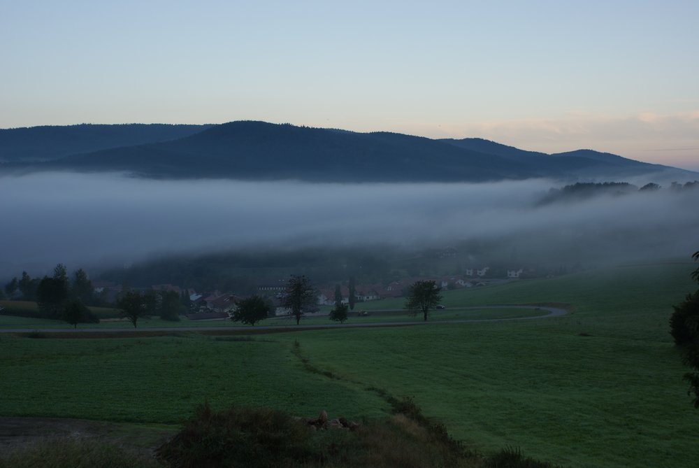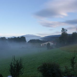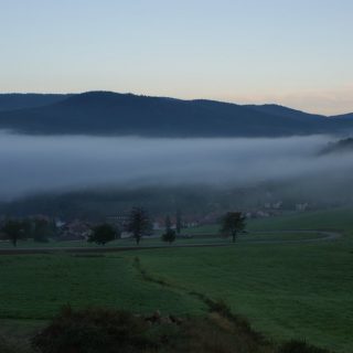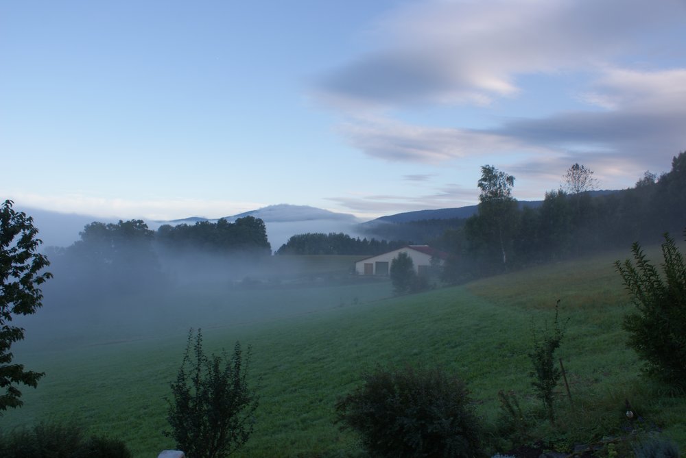 heute also die erste Tour. Zum Einstieg wählten wir eine kurze und relativ leichte Tour, sie ist ca. 6,6 KM lang gewesen und dauerte ziemlich genau 2 Std. Hier der Link zur Tourbeschreibung mit Höhenprofil etc. (http://pages.et4.de/de/bodenmais-outdoor/default/detail/Tour/7422F4D90538590C2A7C2116E0E4F486/panorama-hohenrundweg-ab-bretterschachten) Also nach dem Frühstück los zum „Bretterschachten“ auf 1120 Mtr. üNN. Diesen Parkplatz kannten wir ja schon von gestern, hier fuhr der Shuttlebus zum Biathlon-Stadion ab. Parken ohne Gebühr und los ging’s. Hier gibts ein paar Fotos vom Tag, beginnend mit der Morgenstimmung im Nebel: